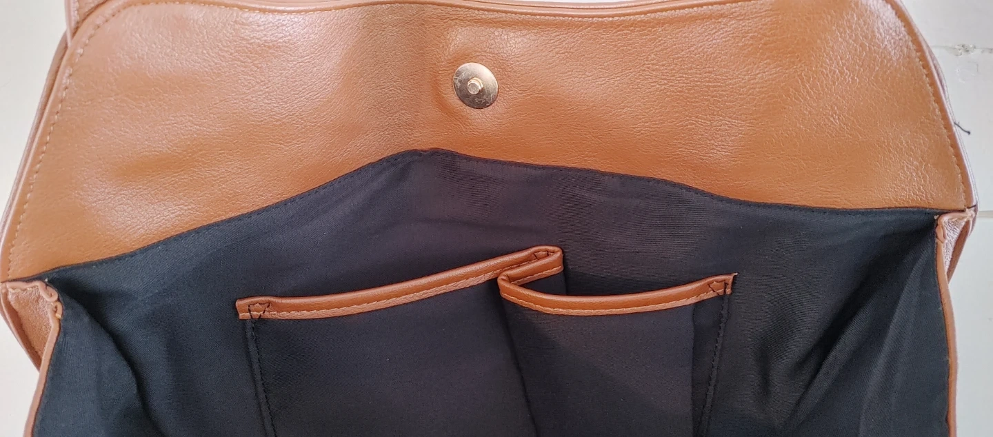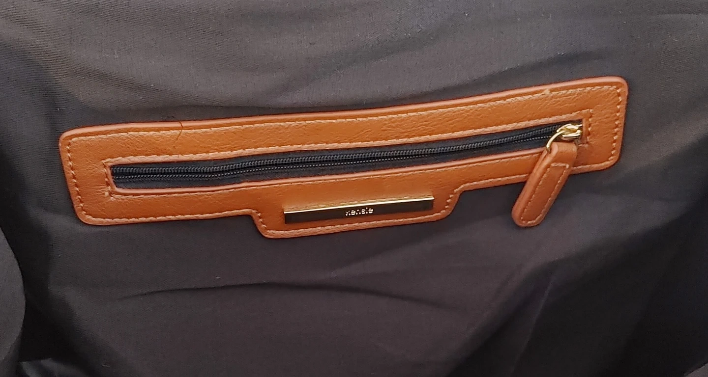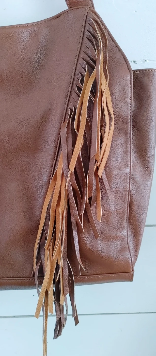 Brown Kensie faux leather tote bag/purse with fringe detailing. Excellent condition. Like new. No rips or stains. Zippers and snaps working perfectly. Thoroughly cleaned and disinfected. Smoke free home pick up Mt Brydges cash only.