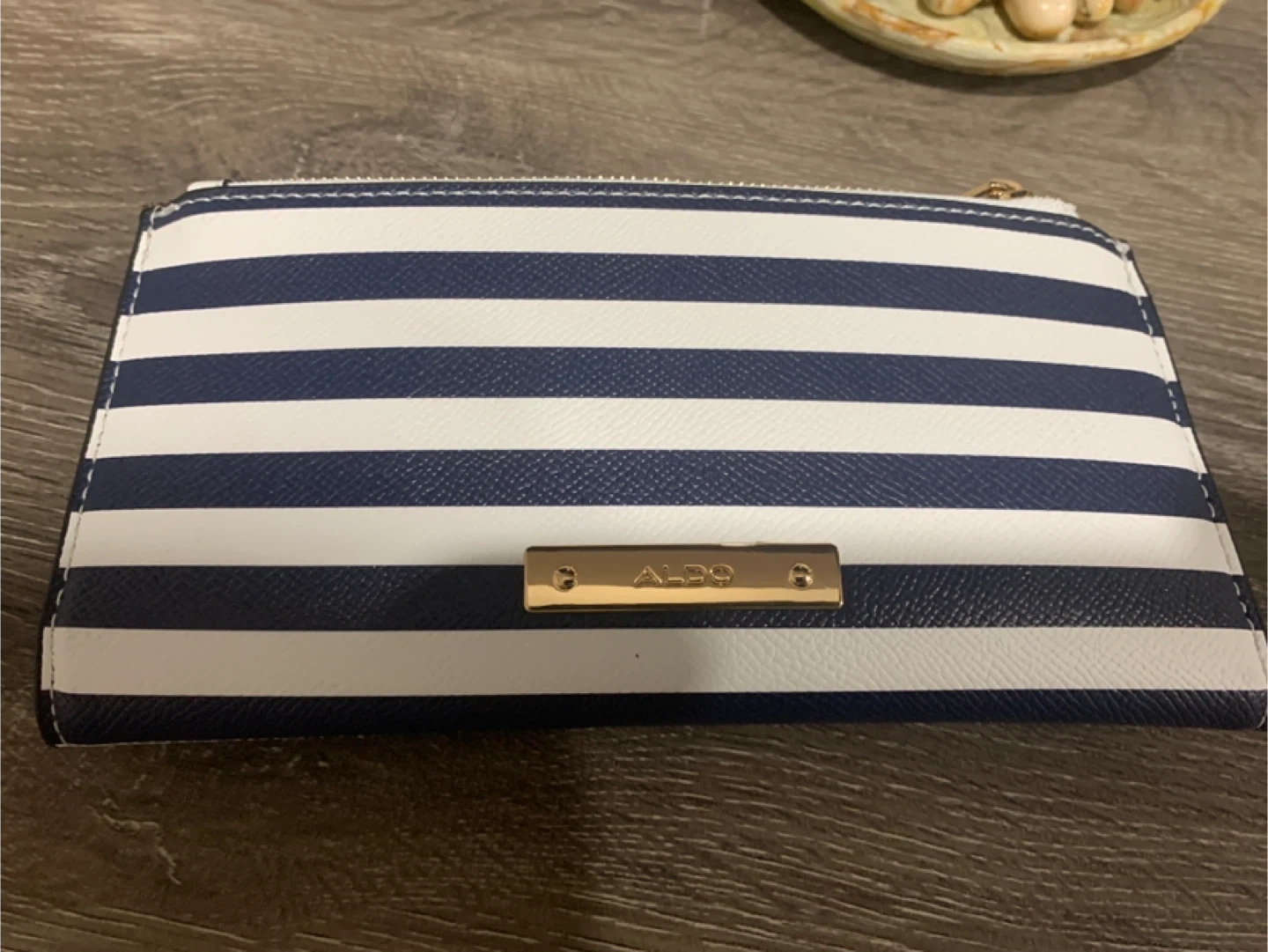Cute striped wallet from Aldo! It's in great shape and has a secure clasp closure, perfect for keeping your cards and cash organized