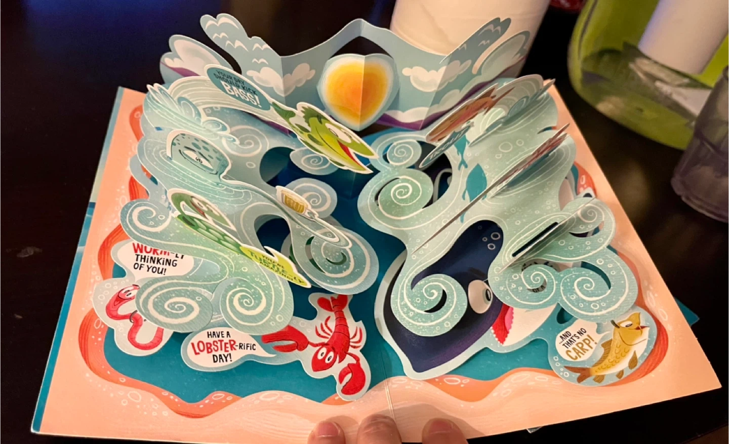 This is a Hallmark pop-up card that reads "You're a Great Dad! So, just for you...". The inside features fun sea creatures and puns like "Have a LOBSTER-RIFIC DAY!" and "You're TURTLE-LY amazing!". It's a fantastic way to show appreciation for Dad!