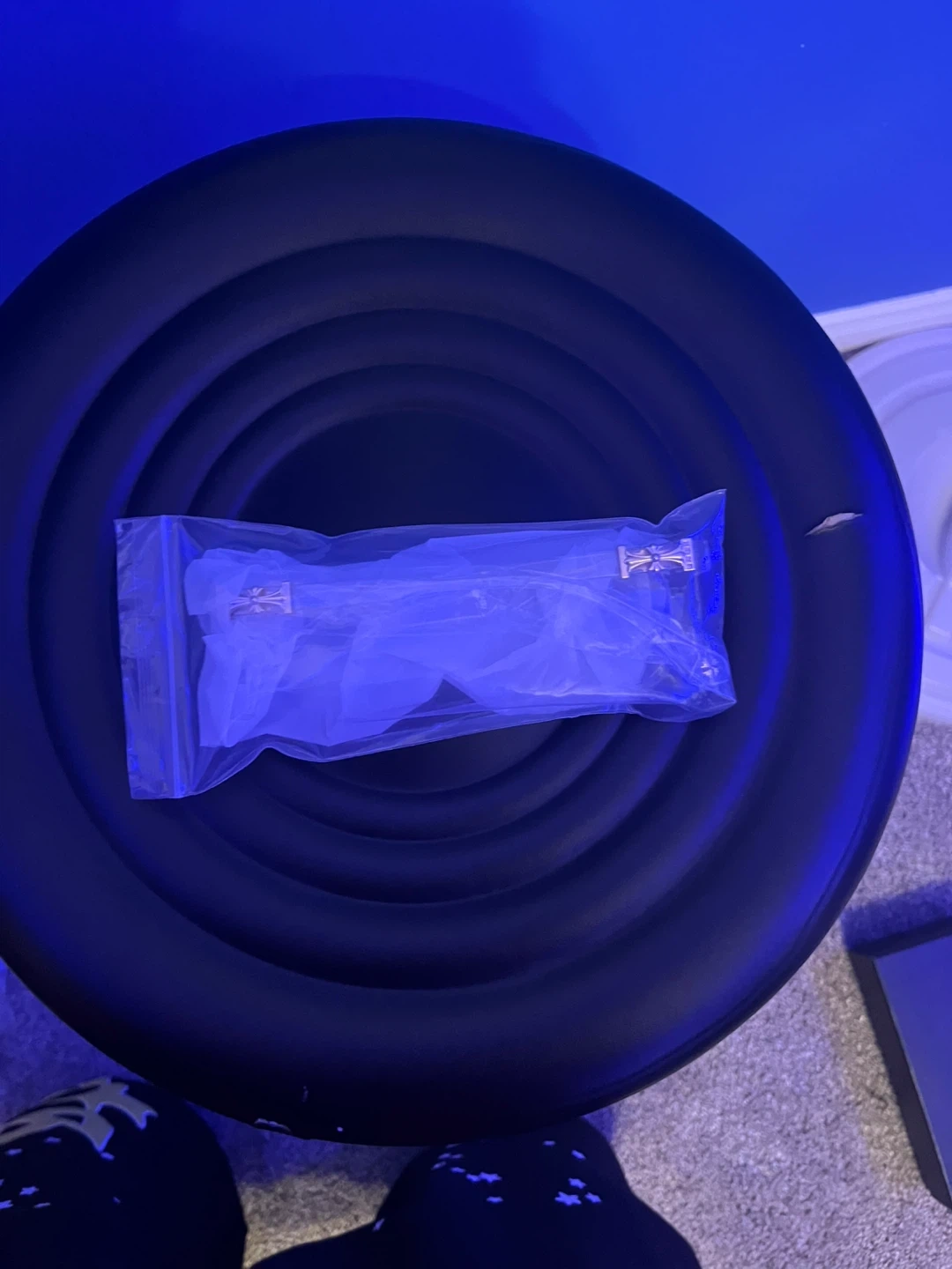 Clear acetate optical frames with decorative embellishments on the temples. Includes original protective bag.
