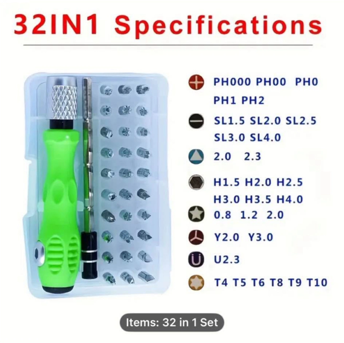 6332-in-1 Precision Screwdriver Set for Electronics Repair - Multi-Functional, No-Handle Design, Metal Bits, Ideal for Mobile Phones, Laptops, and Computers, Precision Repair Tool|Multifunctional Tool|Metal Bit Set, Precision Screwdrivers