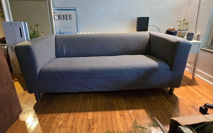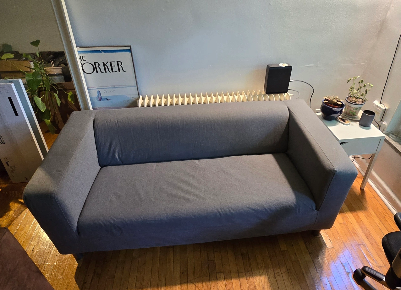 176Grey fabric IKEA Klippan loveseat with metal legs. Great condition, the only issue is one of the black plastic leg caps is missing (shown in pictures). Works well in smaller spaces! We got a new couch and don't need this one anymore. Looking to sell ASAP so priority goes to whoever can pick up soonest. Asking $100 or best offer! Pick up only, located near Woodbine and O'Connor.