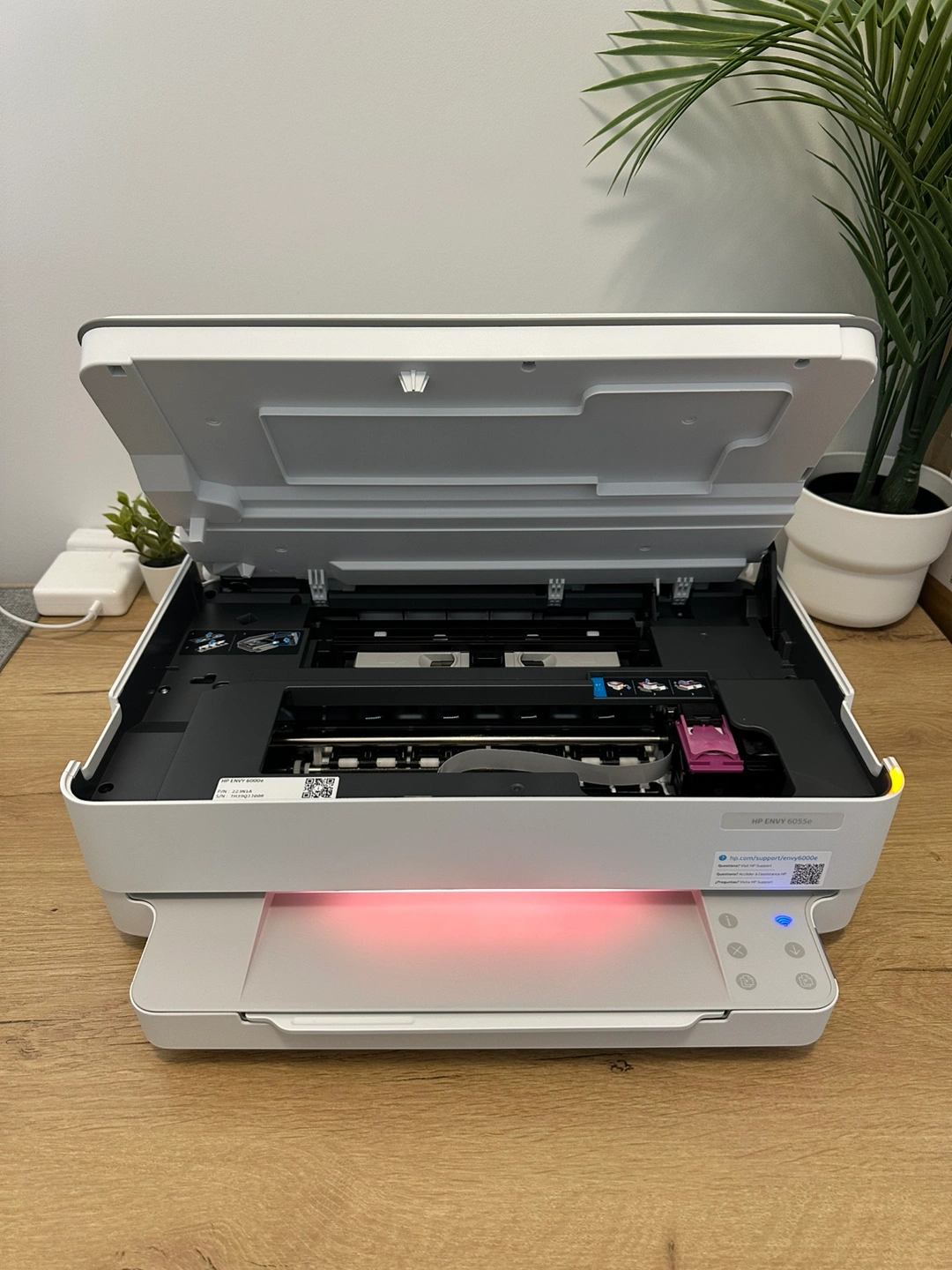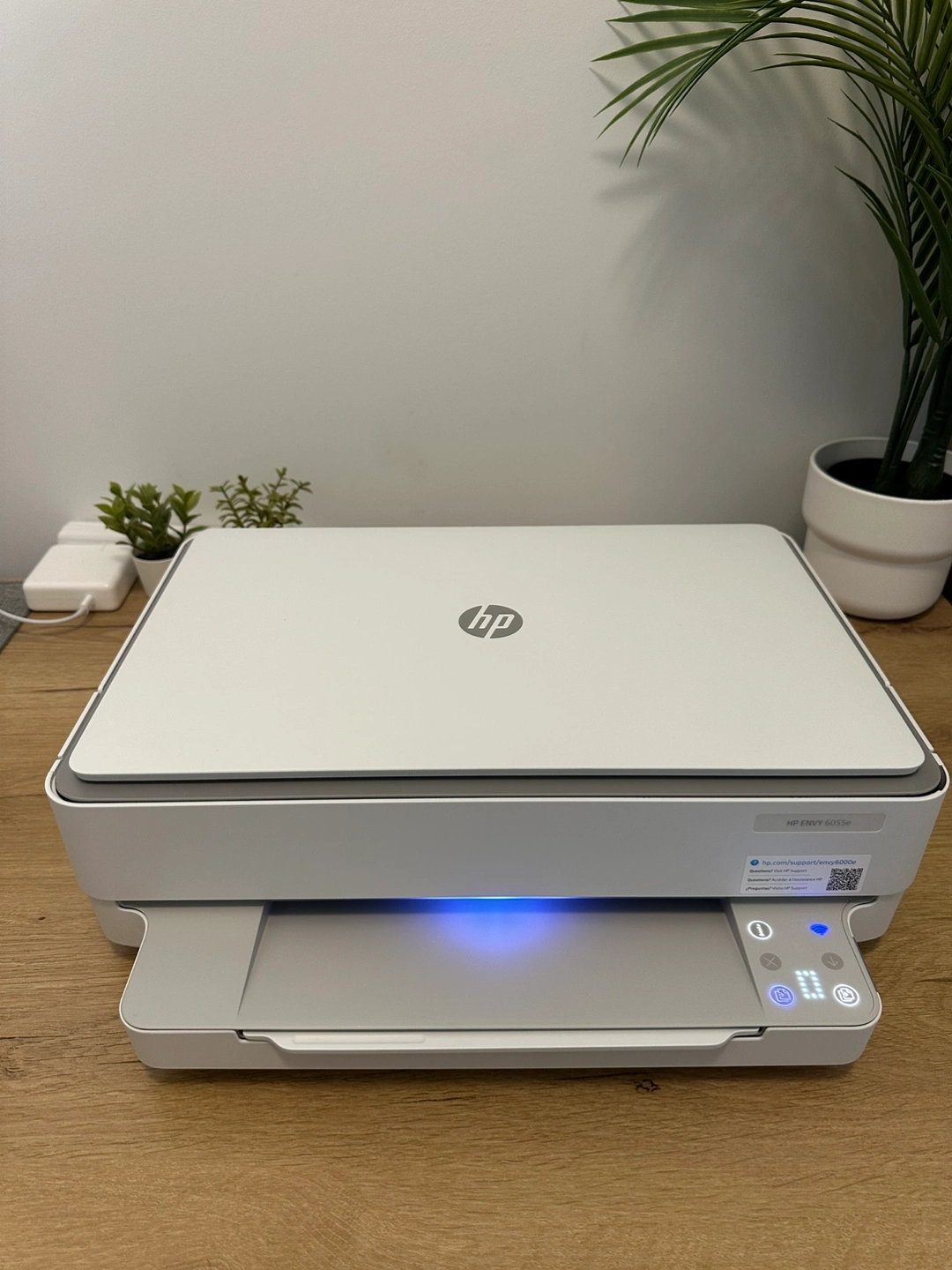 HP Envy 6055e Wireless All-in-One Printer – nearly new, only used a few times! This versatile printer can scan, copy, and print, perfect for home office needs. Includes color ink (no black ink), original box, packaging, and cables. Warranty still valid. Affordable ink cartridges make it a cost-effective choice.