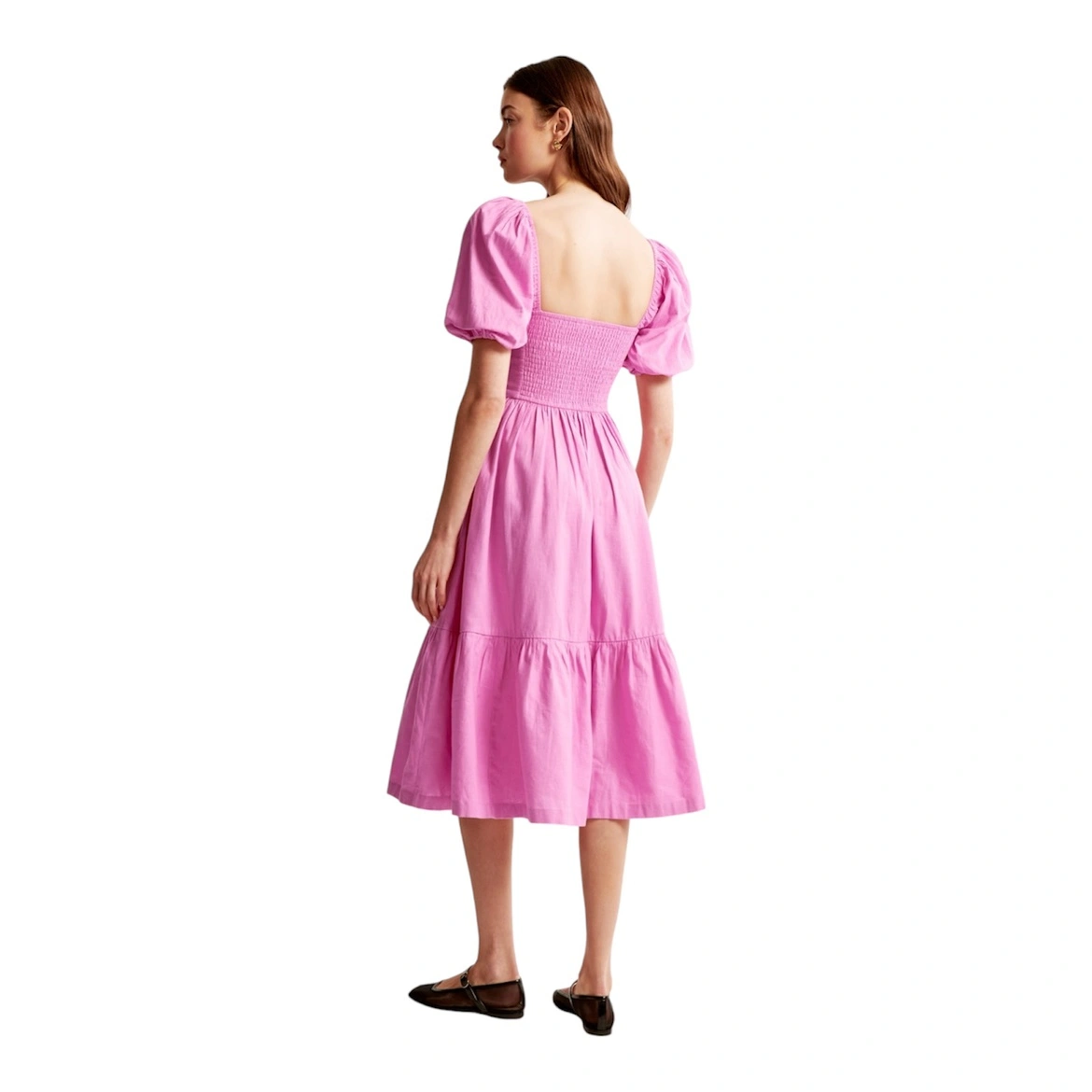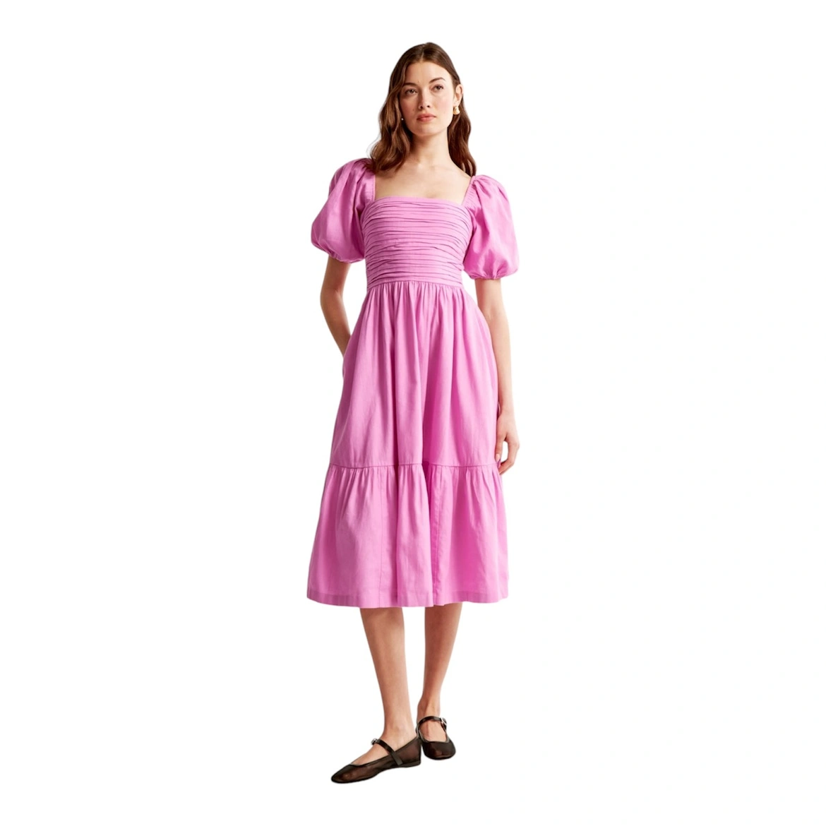Abercrombie & Fitch Emerson Puff Sleeve Midi Dress in Pink Small
