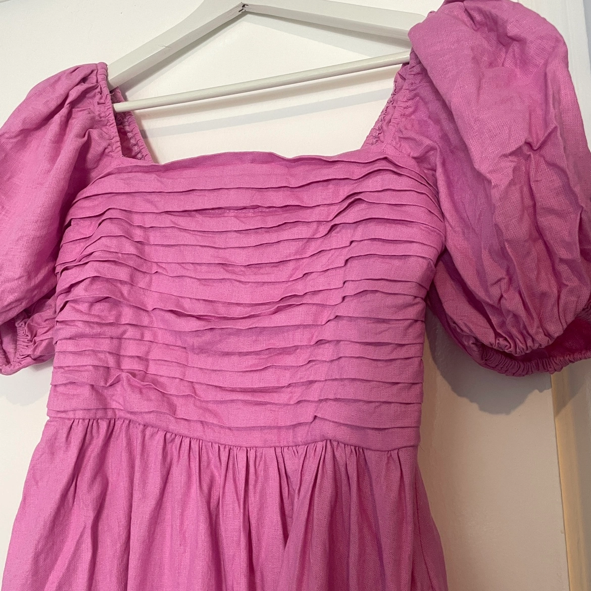 Abercrombie & Fitch Emerson Linen-Blend Puff Sleeve Midi Dress in Pink Size Small