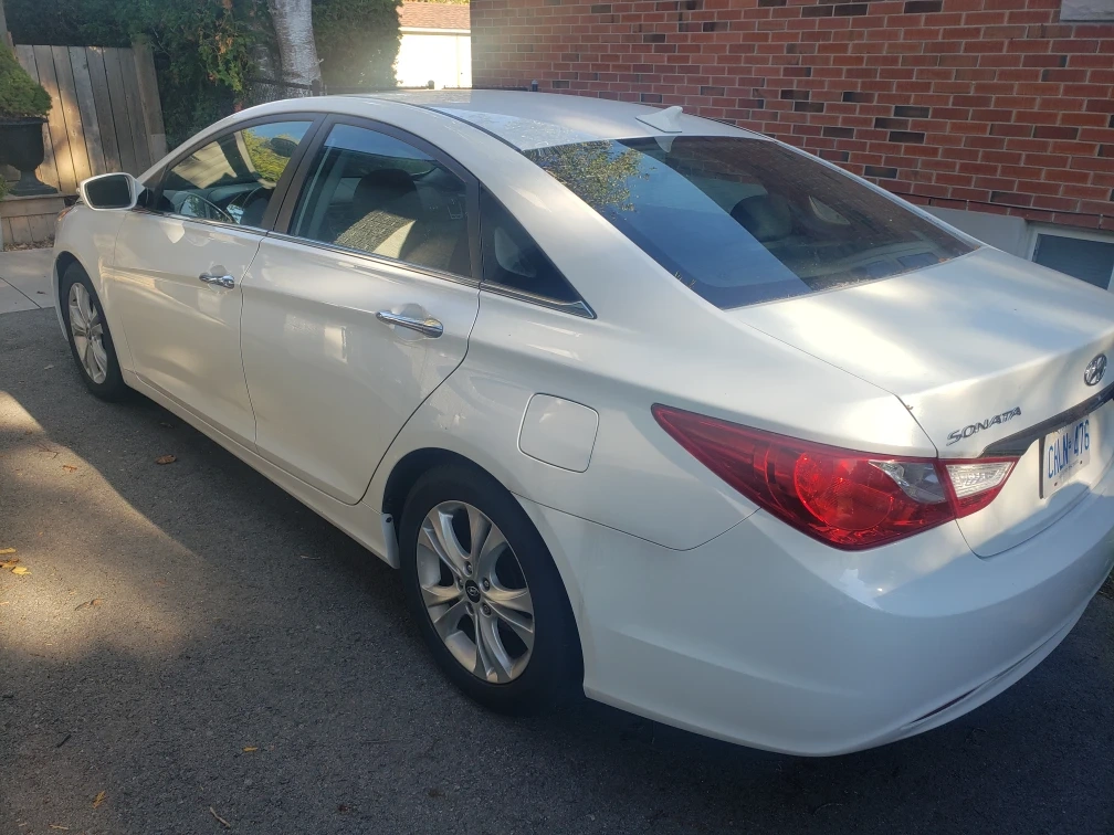 This is a white 2011 Hyundai Sonata with a sunroof, heated seats ,automatic transmission, and approximately 123,000 km. Selling as is .