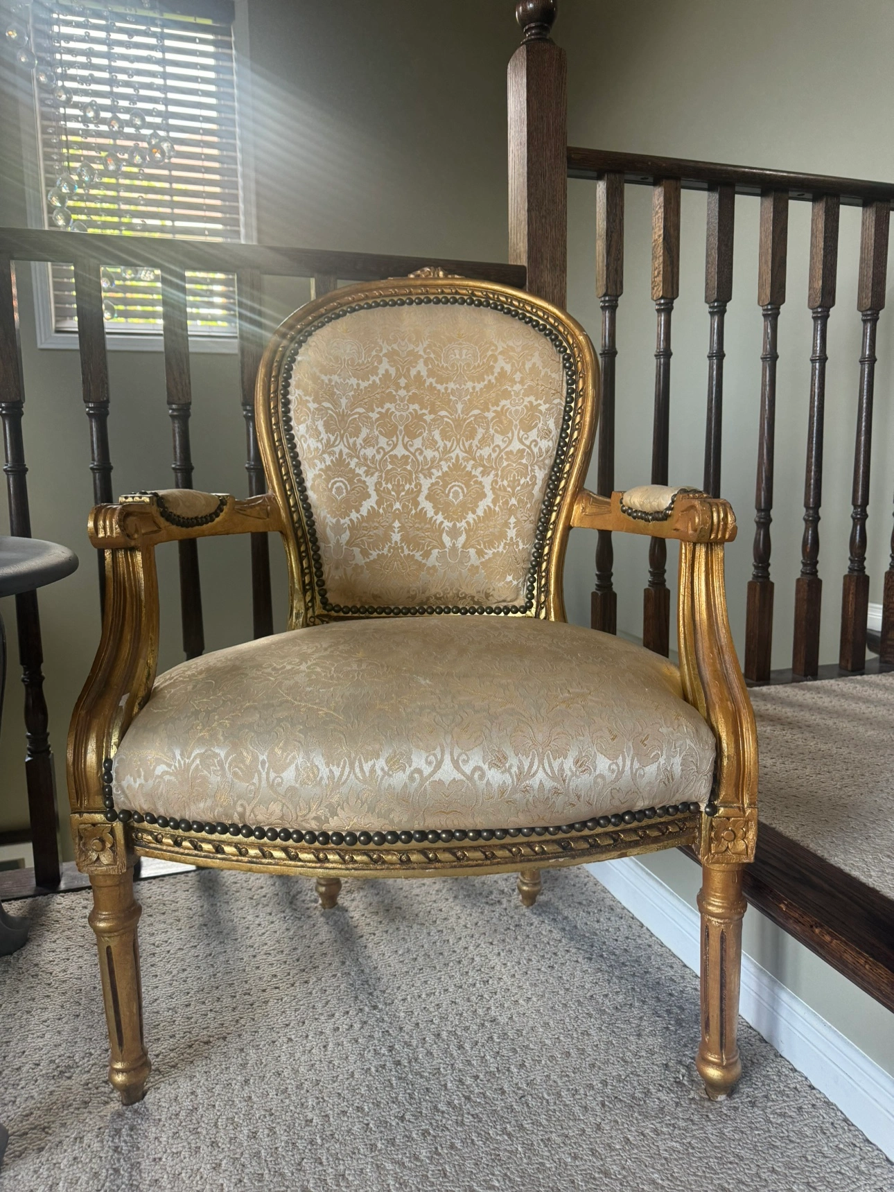 Buy & SellGold Accent ChairGold Accent Chair$130A beautiful and elegant chair with a gold frame and a gold and beige patterned upholstery. Open to offers.ConditionGoodWHERE TO MEETL1KView MapSELLERMinTaunton140 reviews0 chats·0 favorites·32 viewsSEND CHAT TO SELLERHi Min! I’m interested in your listing.Hi Min! I’m interested in your listing.Get the Karrot app to chatSign In to chat