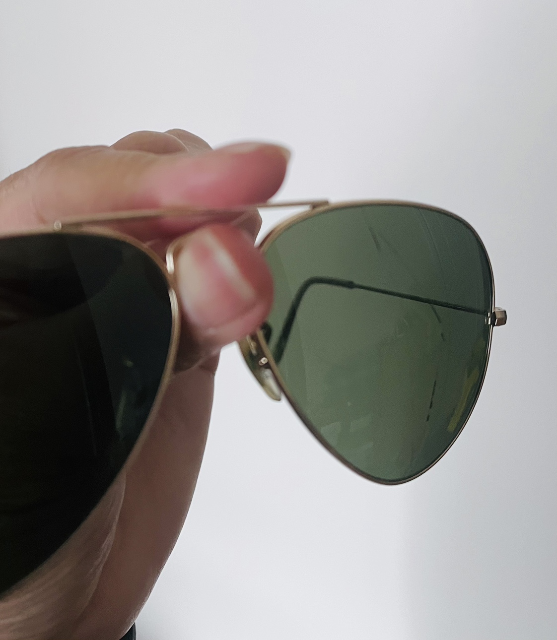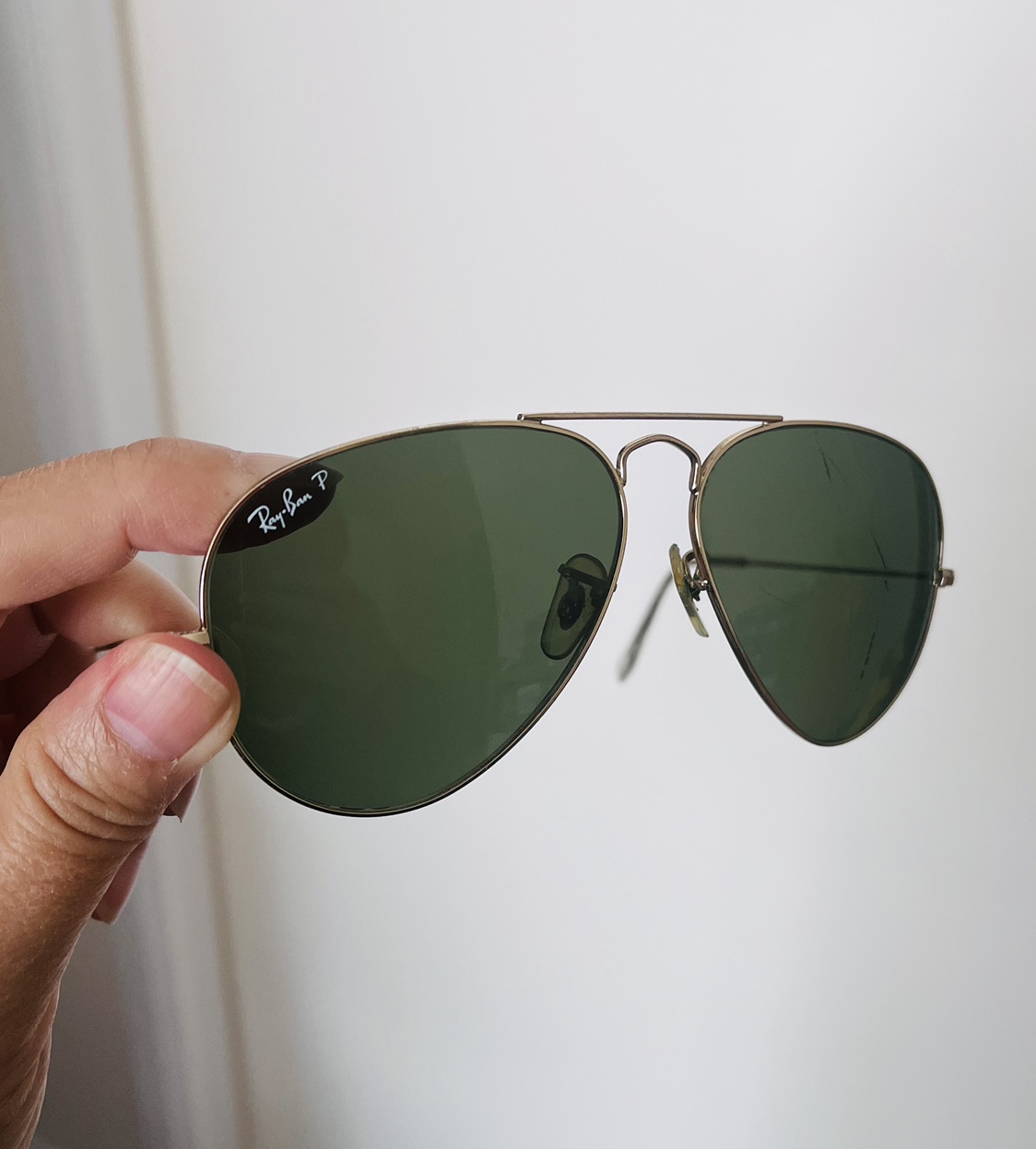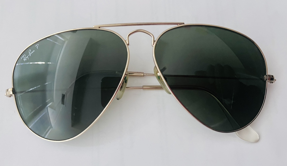 FREE Ray Ban sunglasses - Gold frame with green lenses. No case included. I dropped them and one on the lens has cracked. Please see pictures for details.