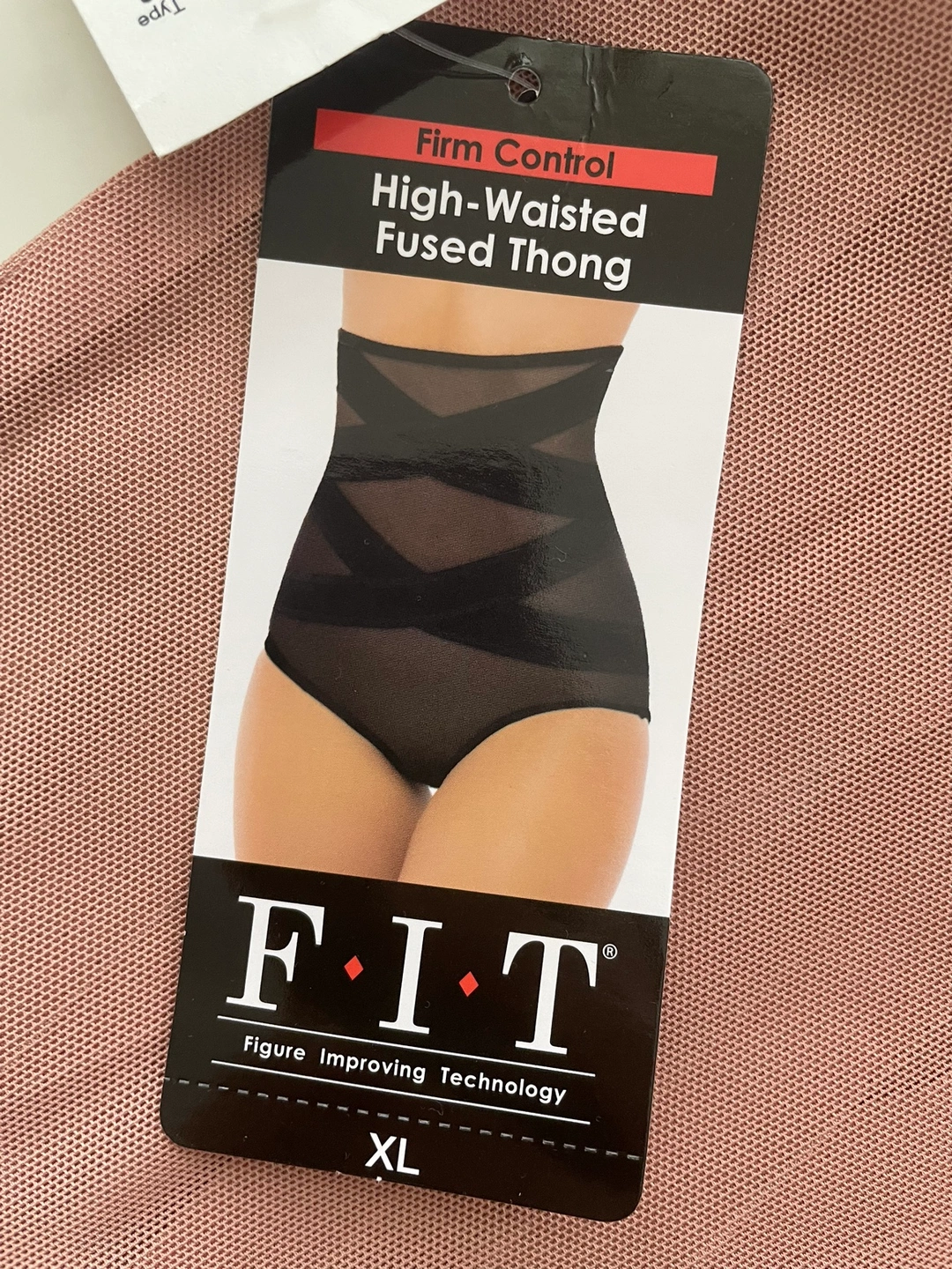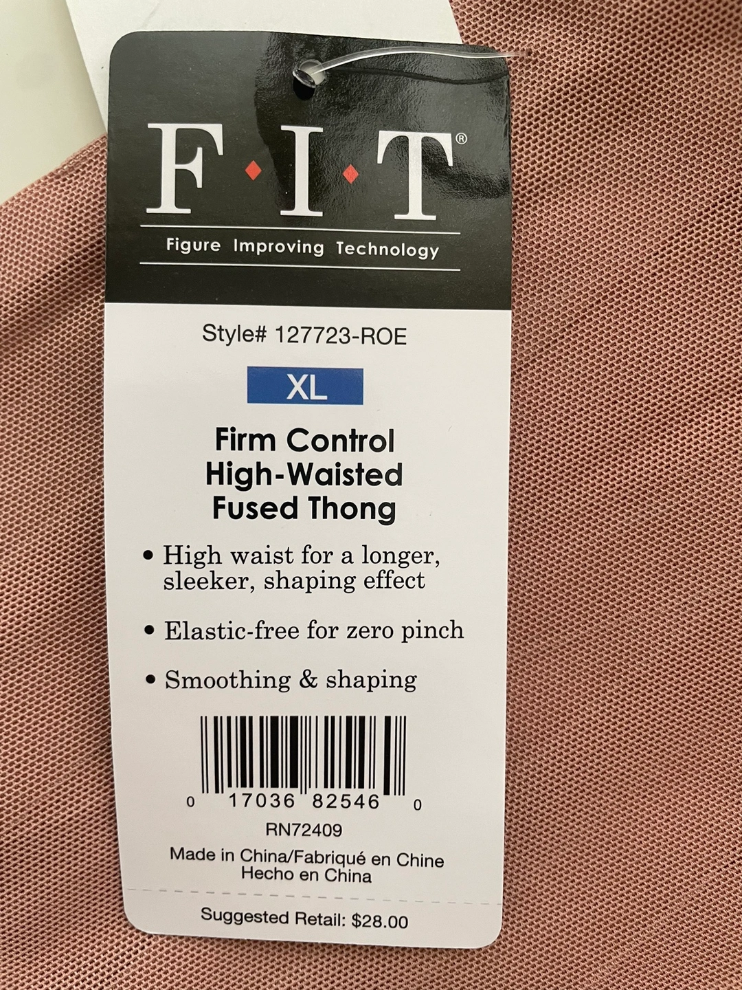 Firm Control High-Waisted Fused Thong in size XL. The thong is made of a soft, breathable material and has a high waist for a longer, sleeker, shaping effect. It is elastic-free for zero pinch and provides smoothing and shaping.