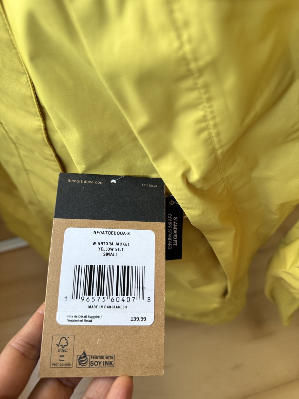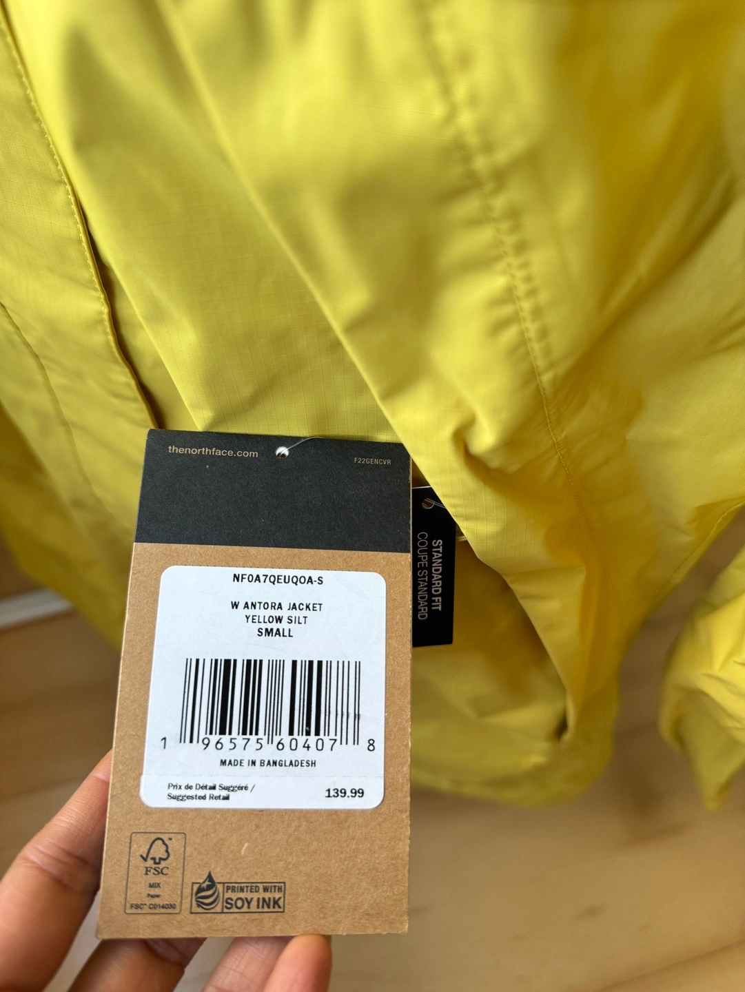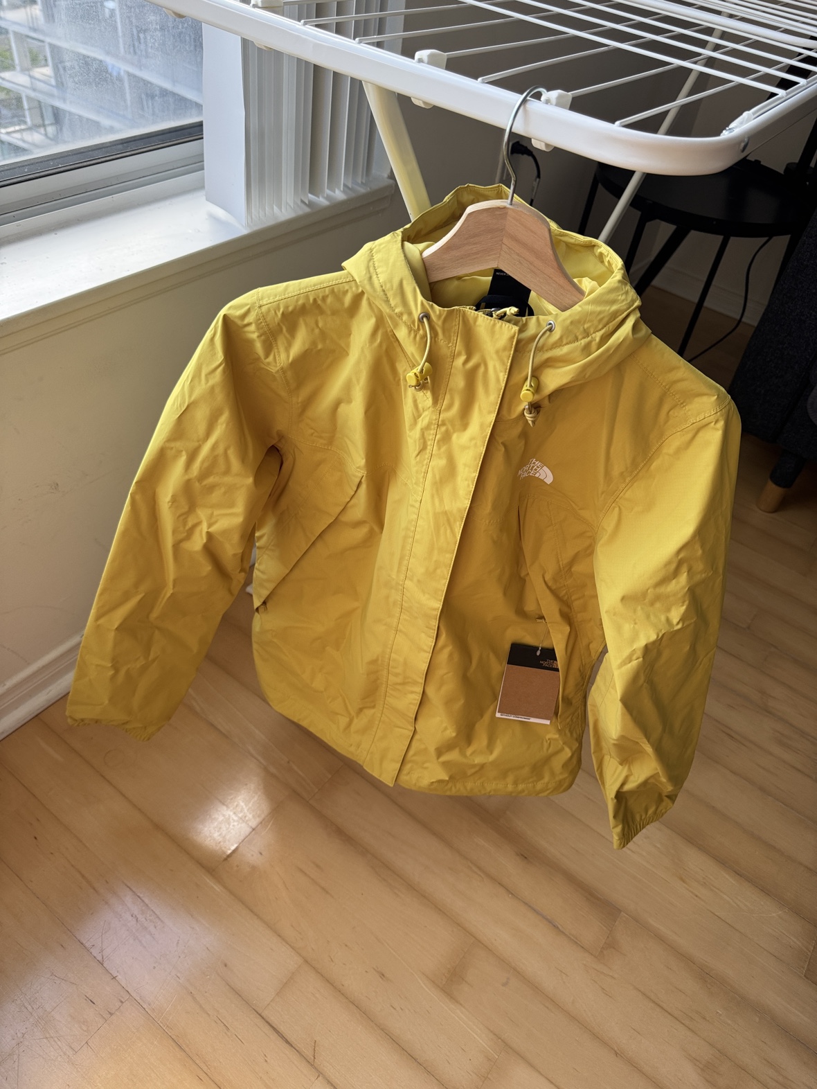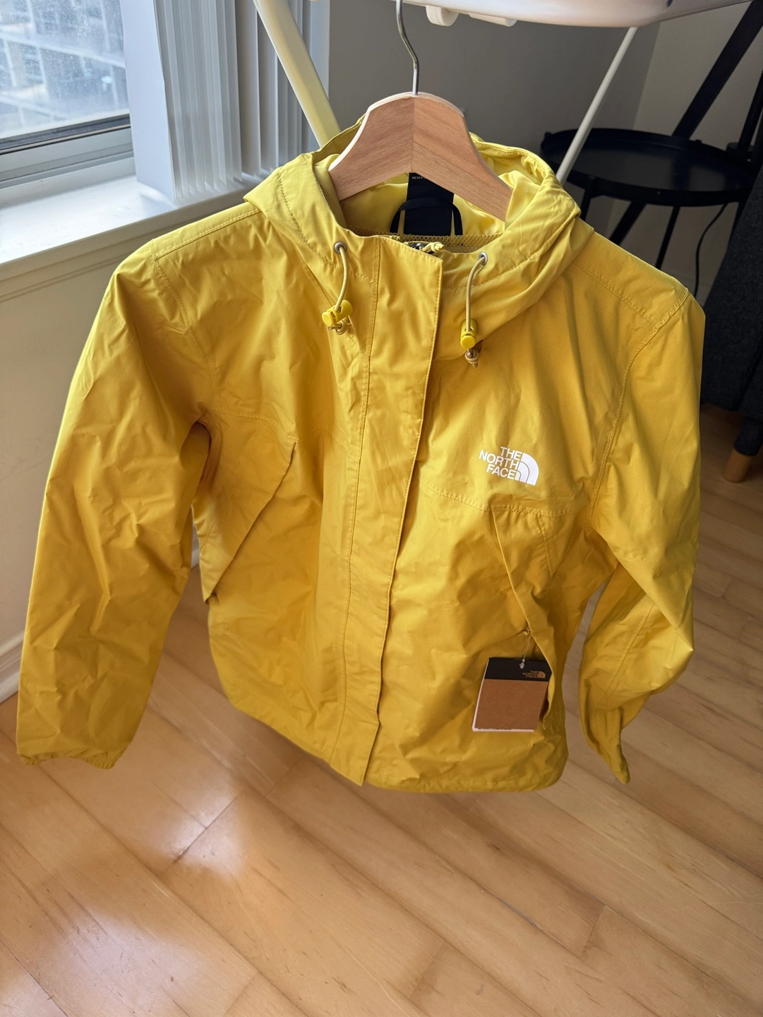 The North Face Antora jacket in the colour Yellow Bolt. The jacket is size small and has a hood. Great for rain, lightweight to carry. Return date over, its unused with tags