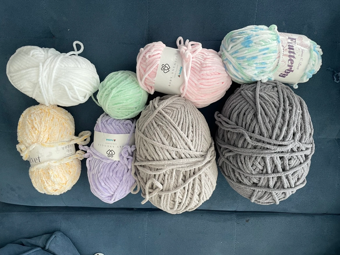 Some Bernat Blanket yarn (barely used, if at all?) and some chenille-style yarn perfect for baby blankets!