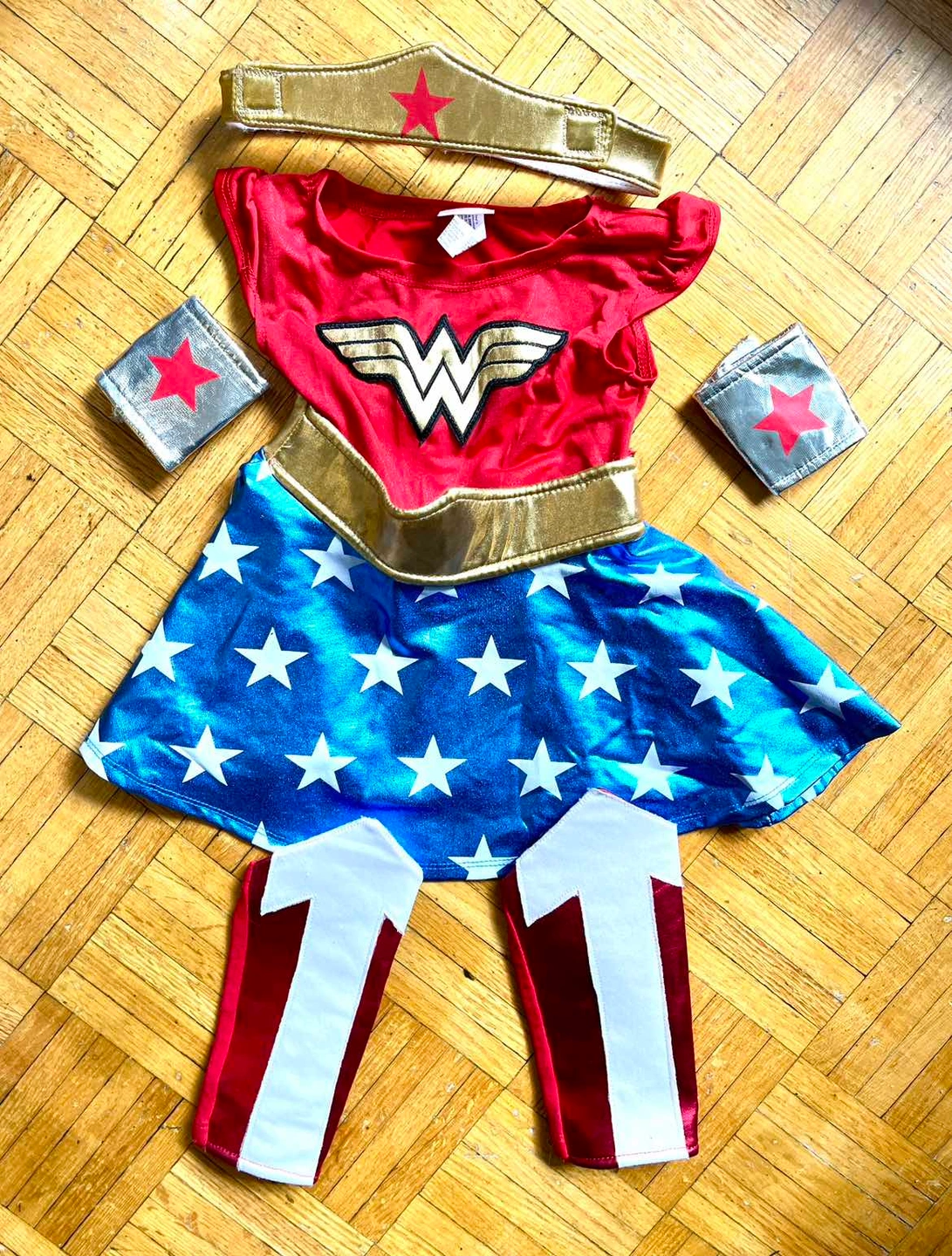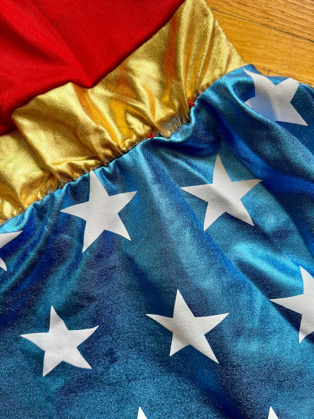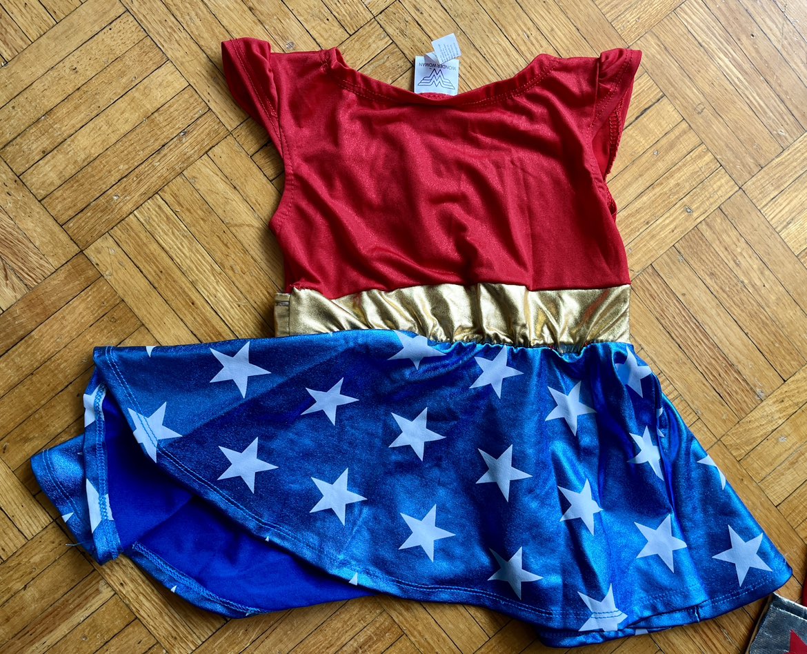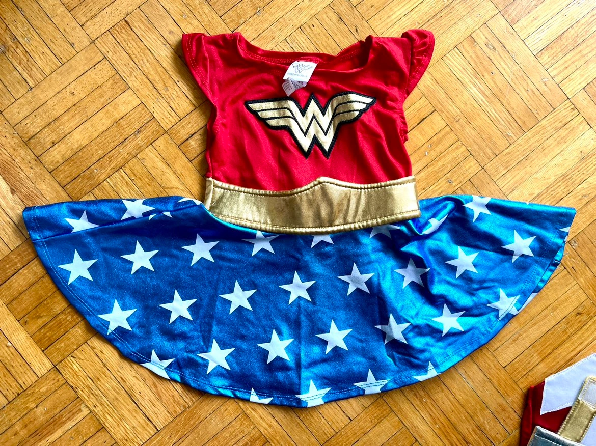 This is a size 2-3 (I’d say it fits more like a size 2) Wonder Woman costume for toddler or infant kids.