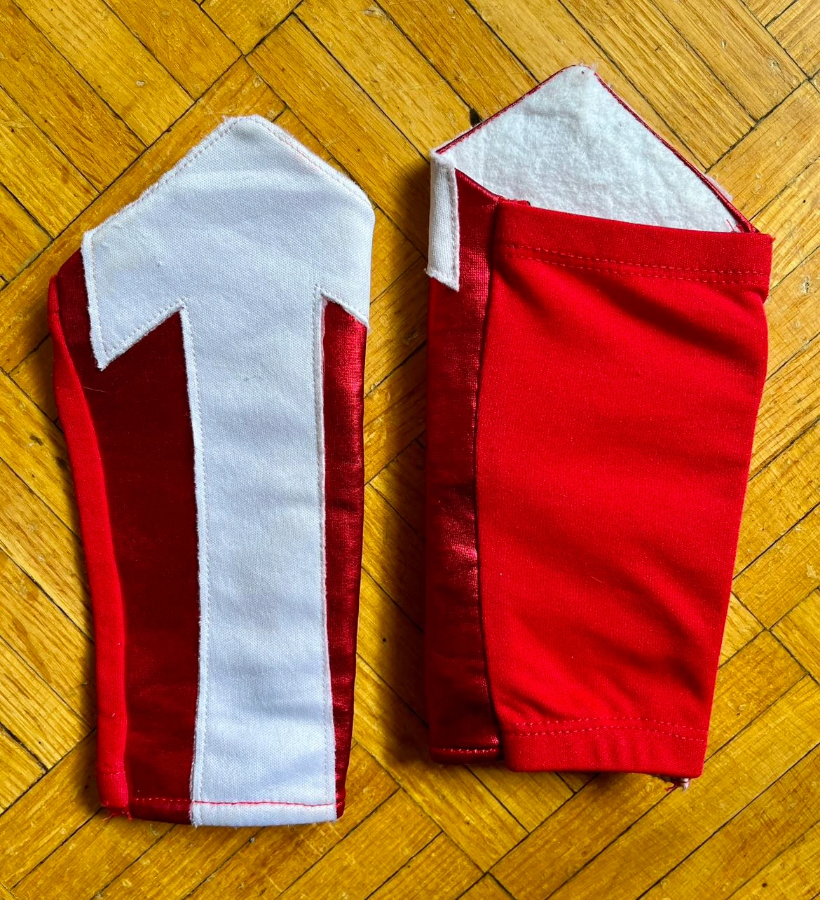 Includes pull-on dress (which is stretchy fabric), stretchy pull-on leg shields, Velcro closure wrist shields and adjustable tiara.