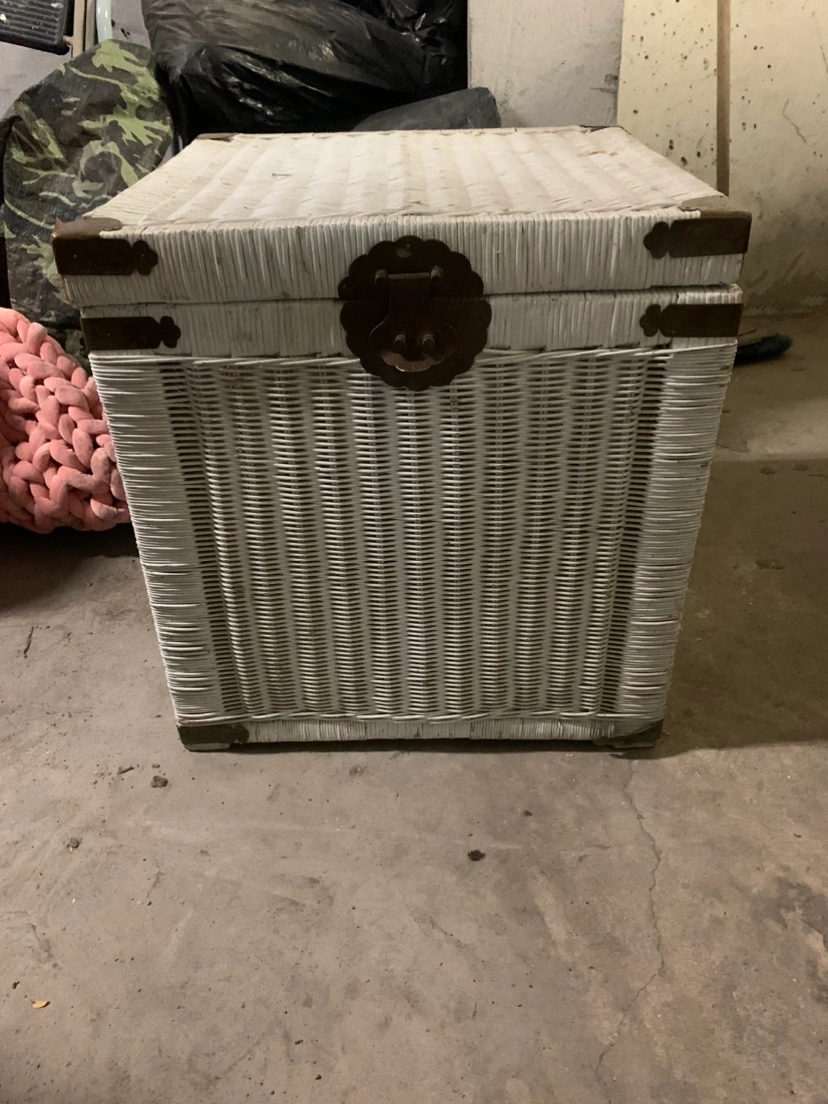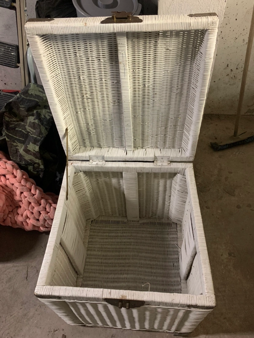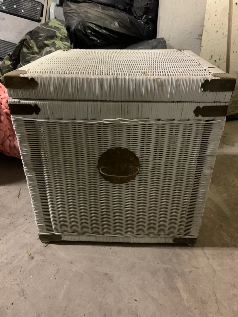 #Freecycle 🥕 White wicker storage chest with metal hinges & latch. The lid opens & closes properly. It needs a good wash & with some TLC this is a beauty to have if you like wicker!! Thanks, Susan 🫠🥕
