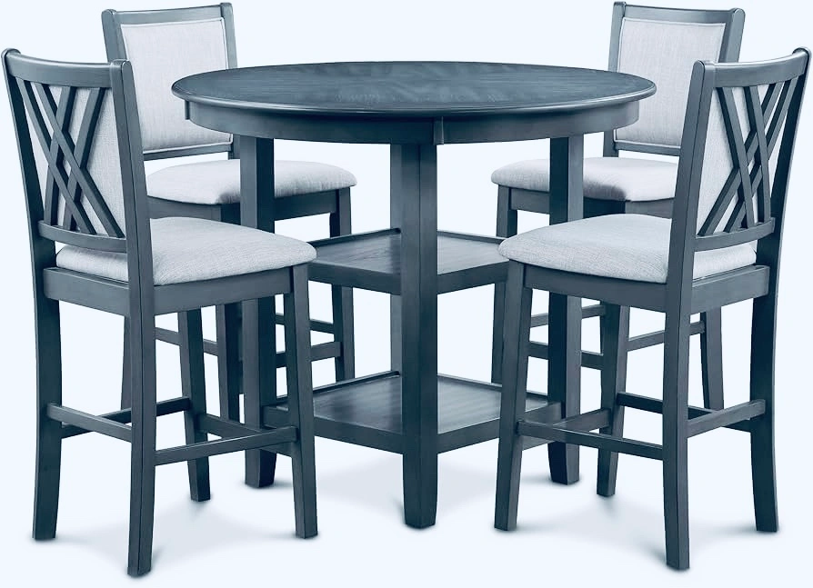 We purchased this table and chairs (separately) back in April. It has never been used for eating, only for decor pieces. It can seat four.
