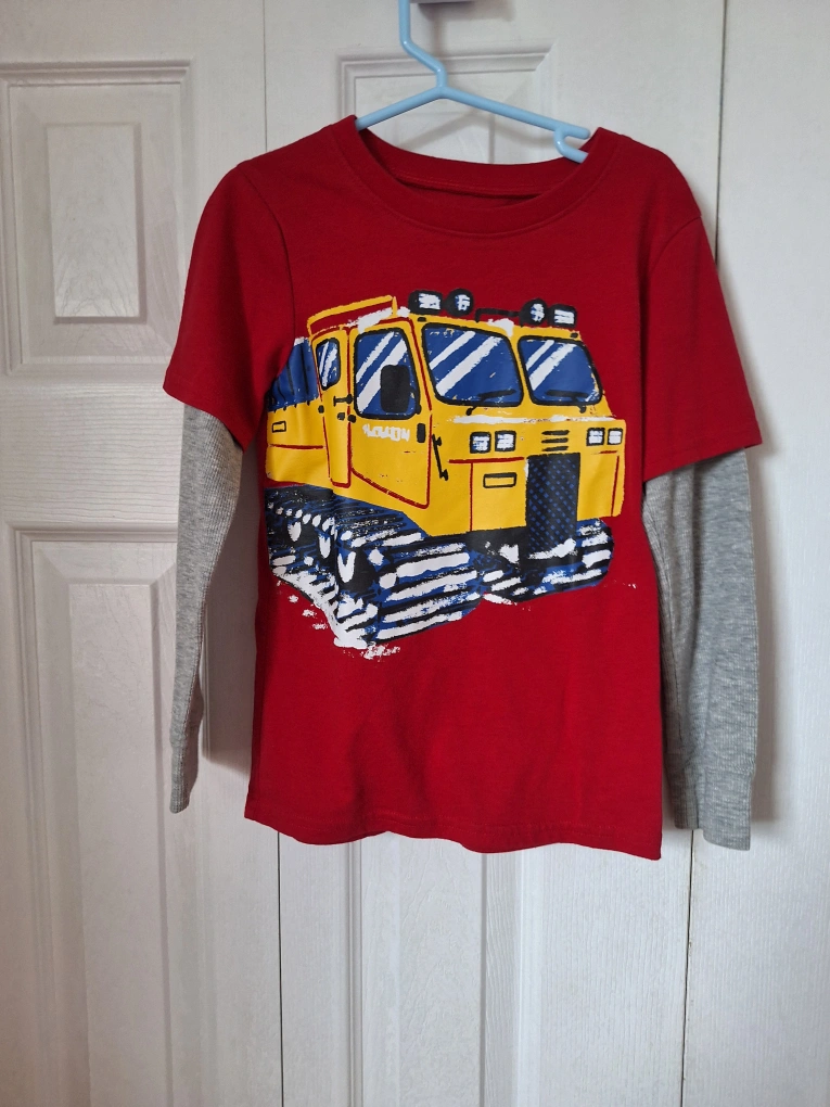 529Size 5T, red with a yellow snowmobile graphic. Grey sleeves. My son loved this shirt but has outgrown it, sadly. A lot of life left. * Check out my other ads for great deals on clothing and more*