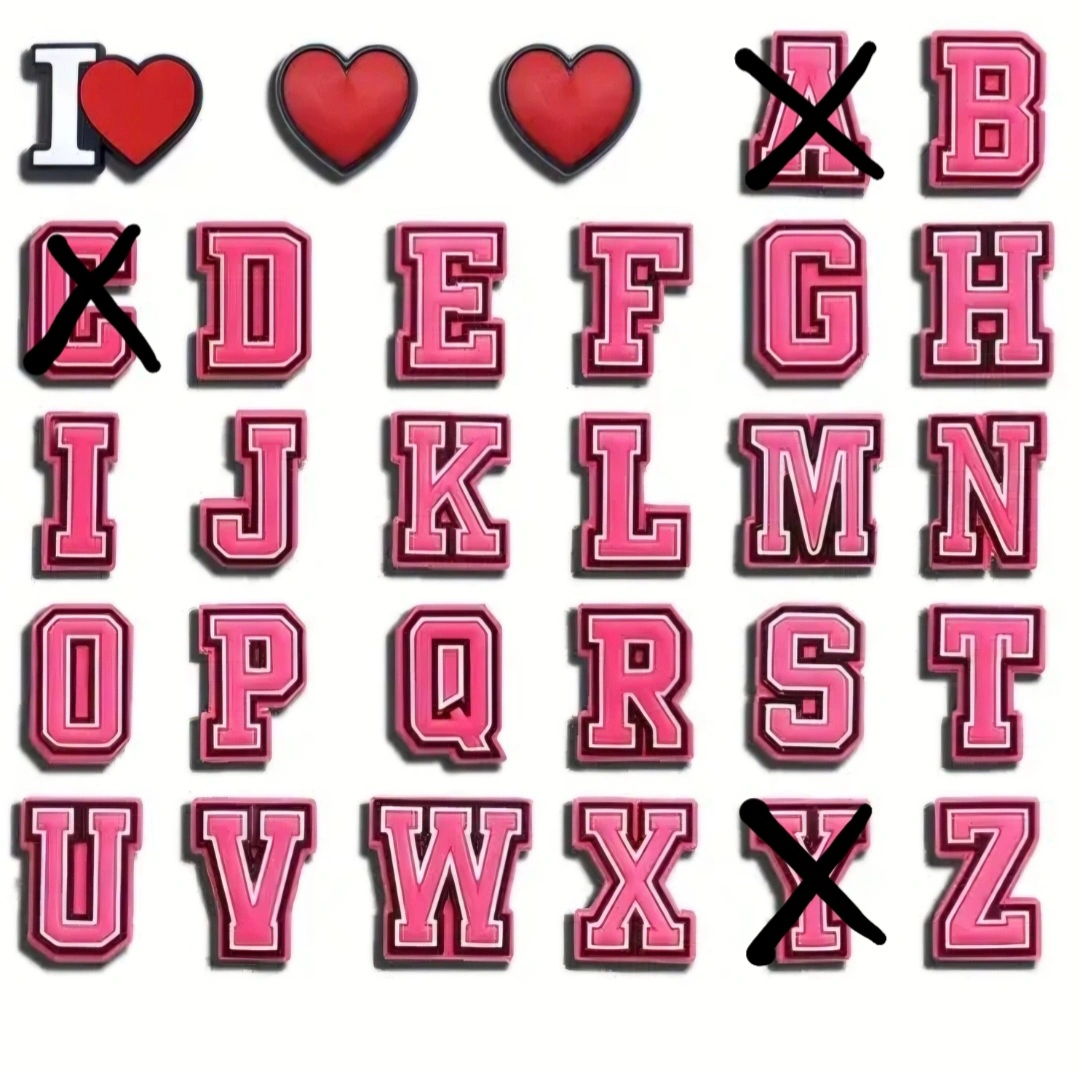 Crocs Shoe Charms (Jibbitz) - Pink Hearts & Alphabets