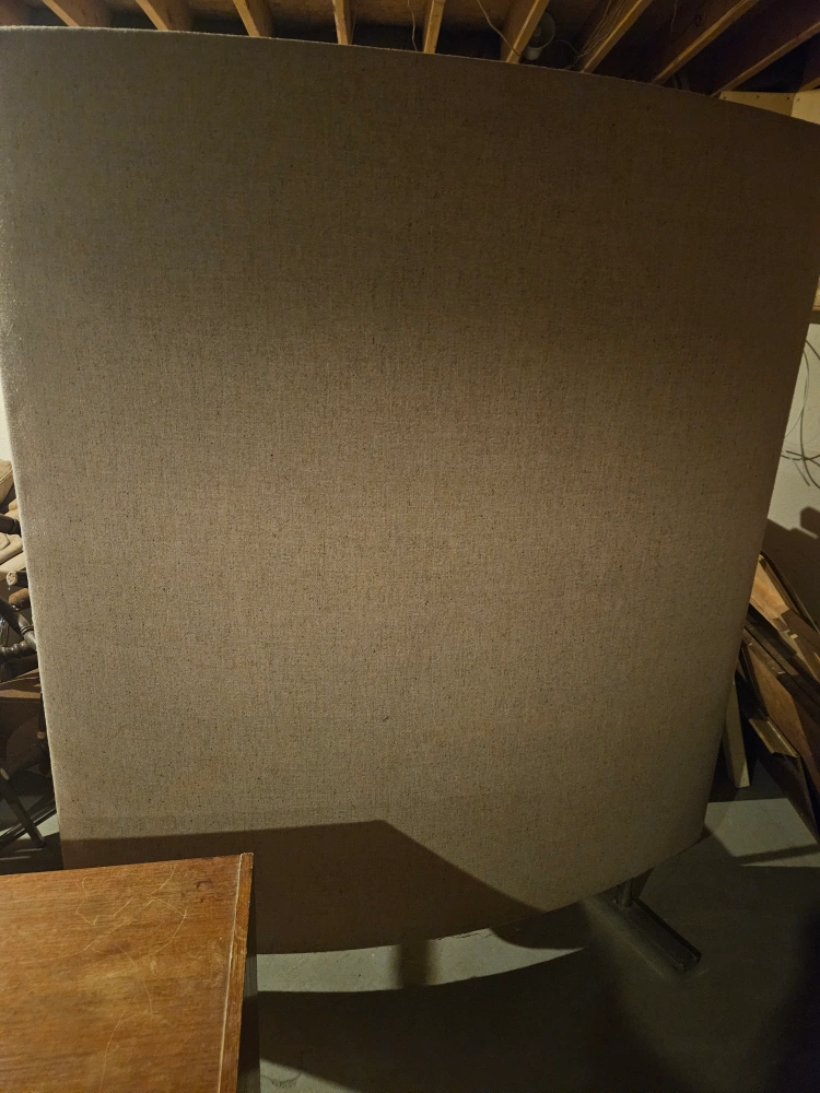 This is a large, curved room divider in great shape. It is free standing and is a beautiful addition to any room. It is made of a durable, light beige material.