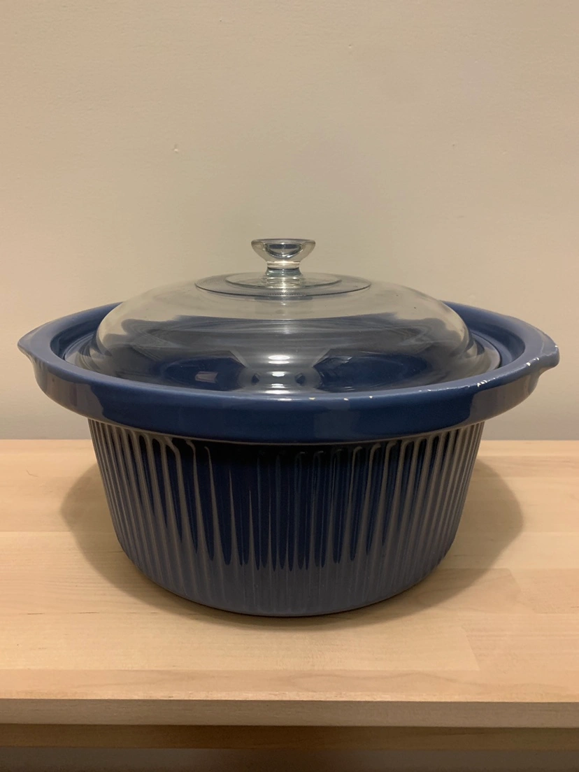 Blue slow cooker insert with glass lid (5 quarts). Note that this is for the insert ONLY.