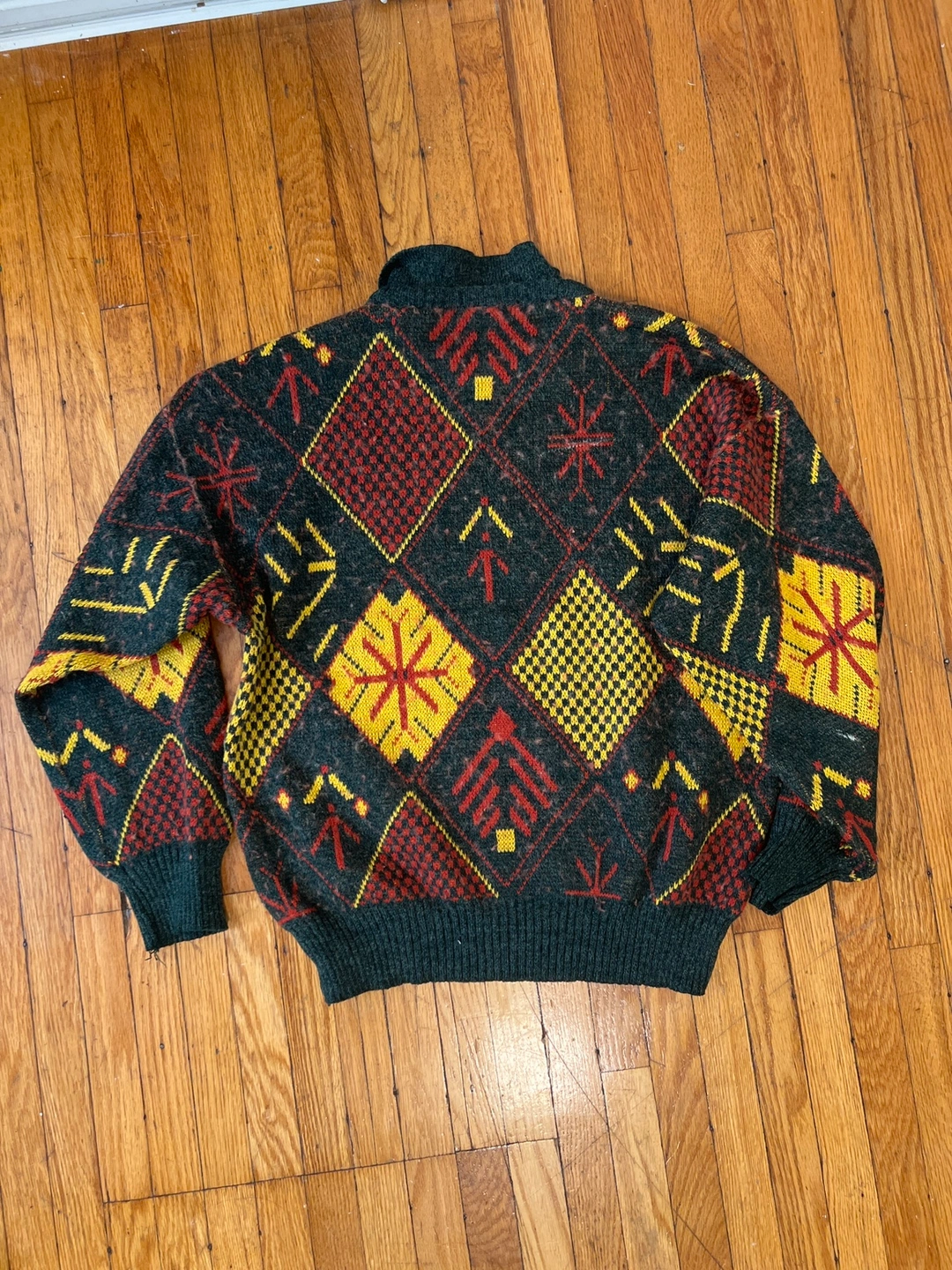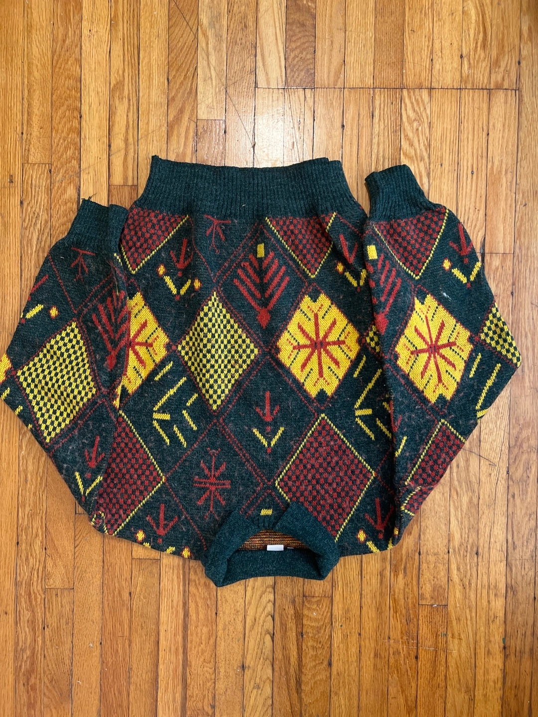 π¬π§ Vintage Green, Red, and Yellow Geometric Sweater