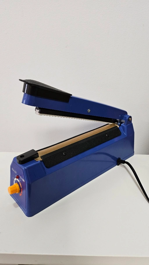 117This machine is used for sealing plastic bags. It comes with a power cord. It has a temperature control dial to adjust the heat. It has a lever to seal the bags. It is in good condition. It is perfect for sealing food bags, packaging items for shipping, or organizing your pantry. 12inch