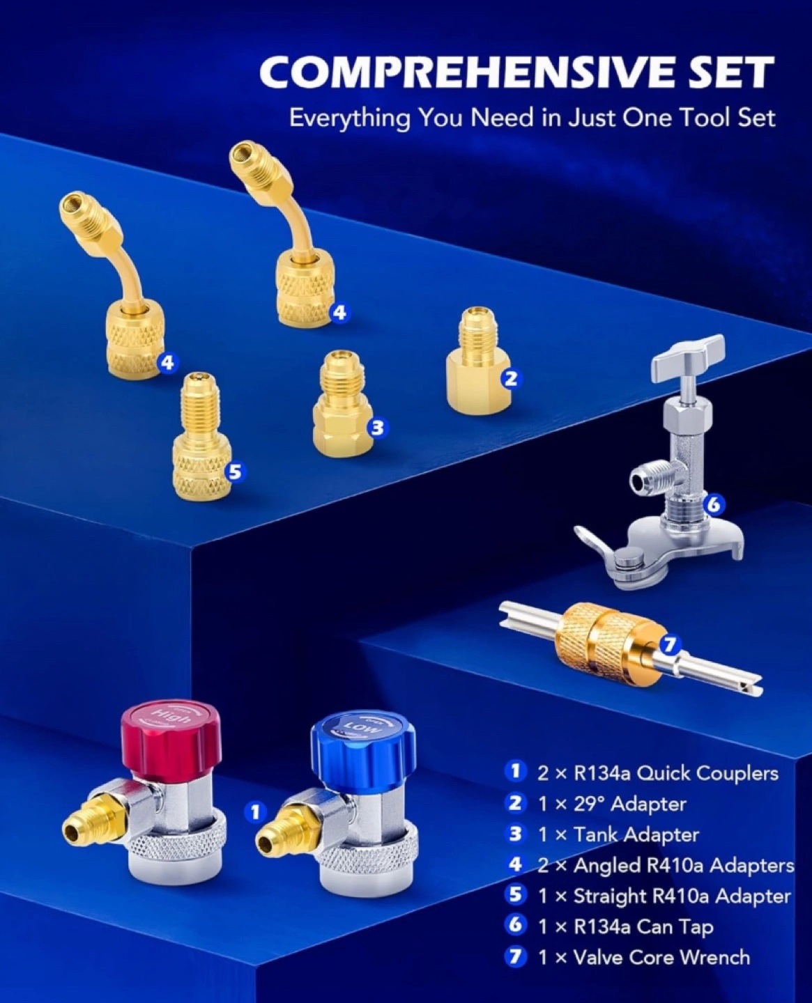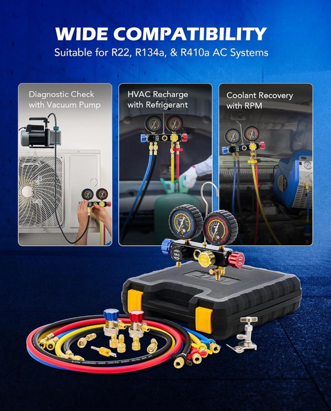 This set comes with everything you need to perform a variety of HVAC tasks including charging, recovery and diagnostic check.