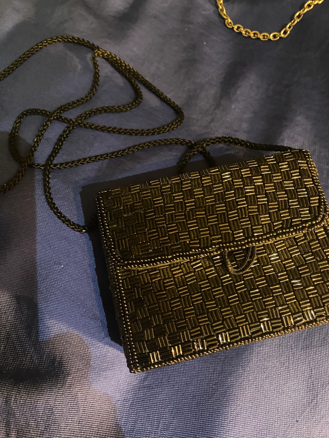 Five vintage evening purses in various styles and colours. All are in good condition. Each bag has a working closure and chain. Perfect for a vintage lover or for dressing up! Would also make a great gift!
