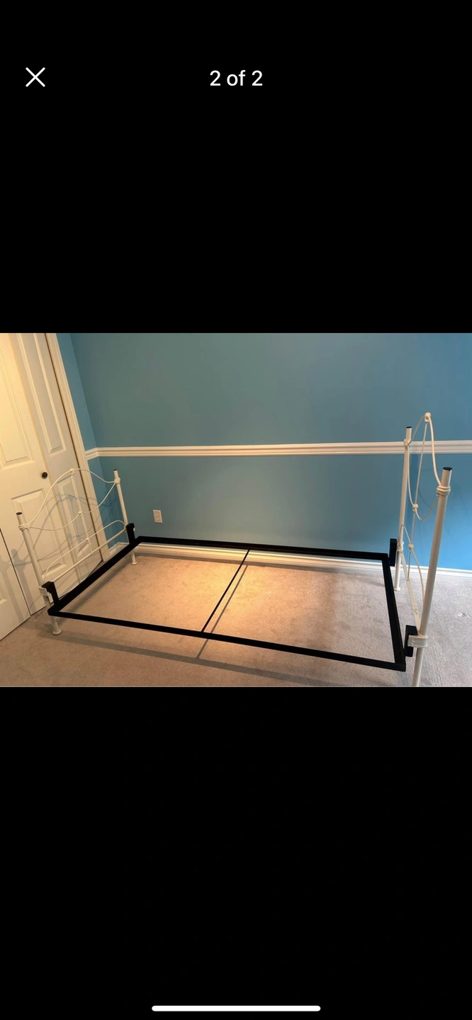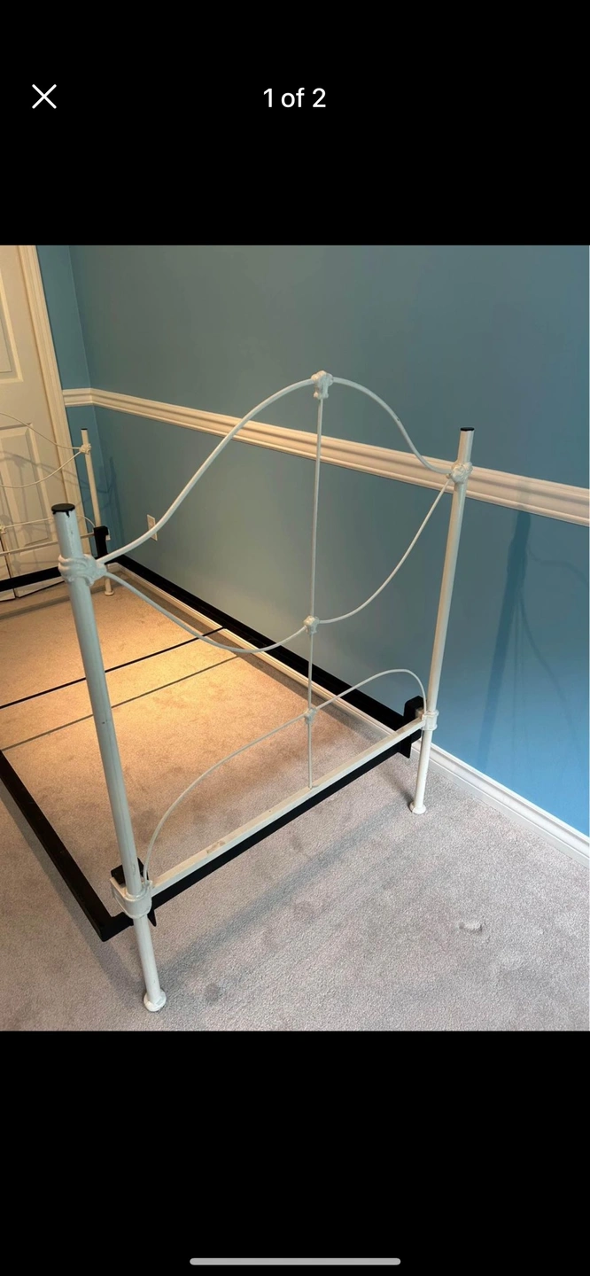 From the 1800s antique White metal twin bed frame. Includes headboard and footboard. Does not include boxspring. Buyer responsible for pickup. Possibly can deliver if not to far and pay for gas.