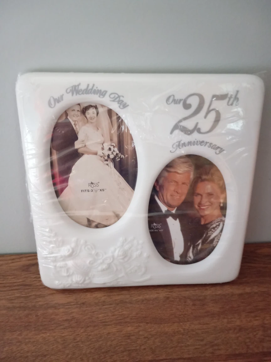 Porcelain wedding anniversary frame. Brand new. 8X8 inches. If listed, still available. Pick up near Kennedy and Eglinton or neat Scarborough town centre mall.