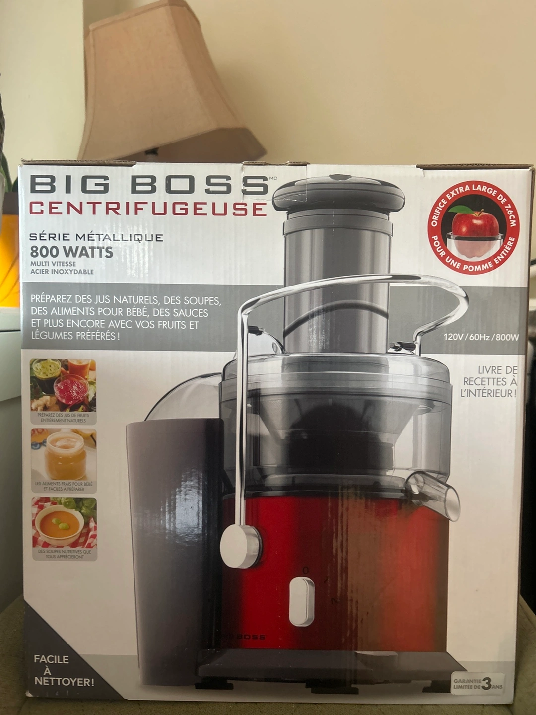 Red Big Boss juicer with 800 watts of power. Includes a 1L pitcher. Has a large feeding tube to accomodate whole fruit and vegetables. The juicer has a 2.5L pulp collector for easy clean-up. The juicer is easy to assemble, disassemble and clean.