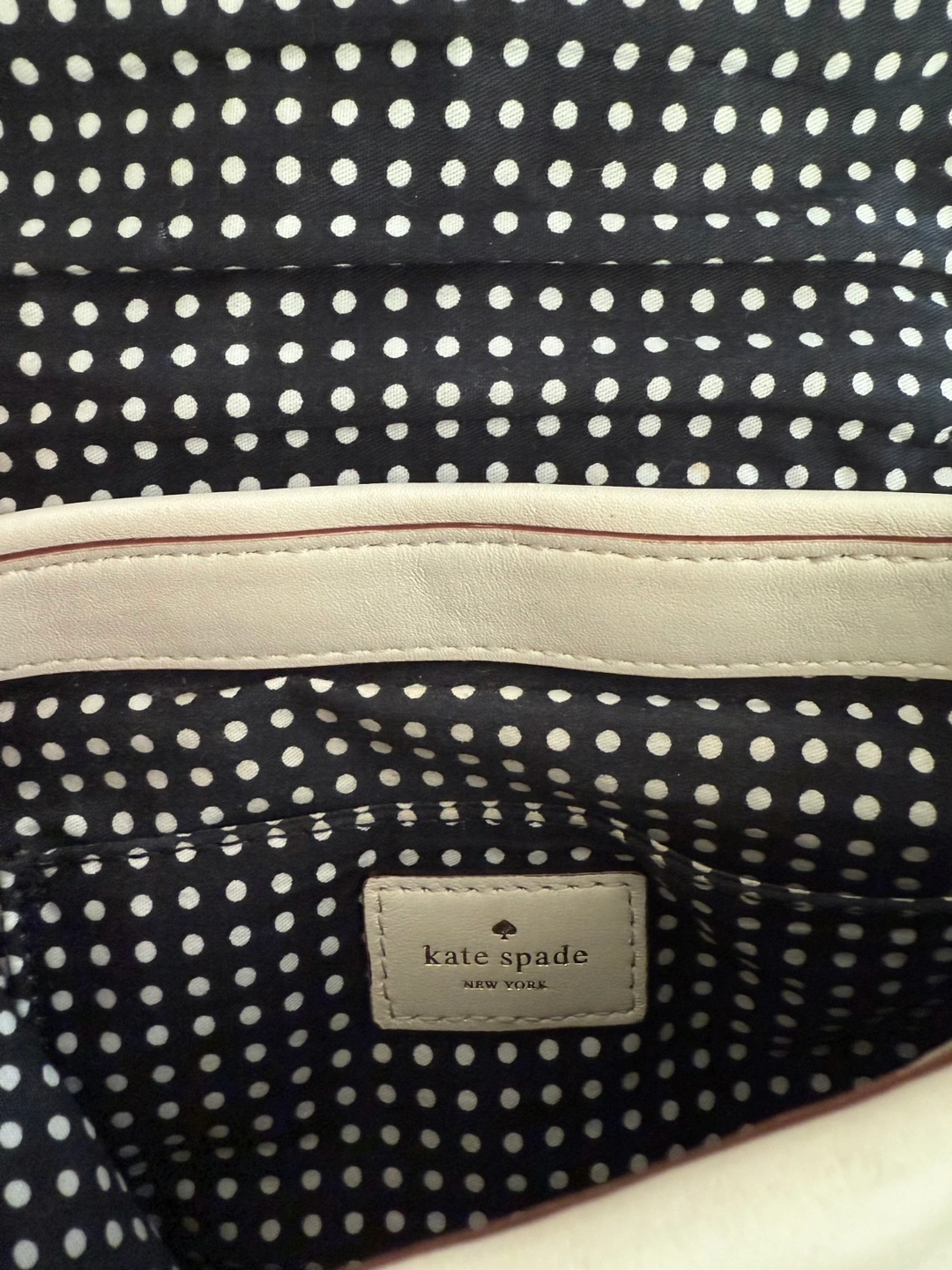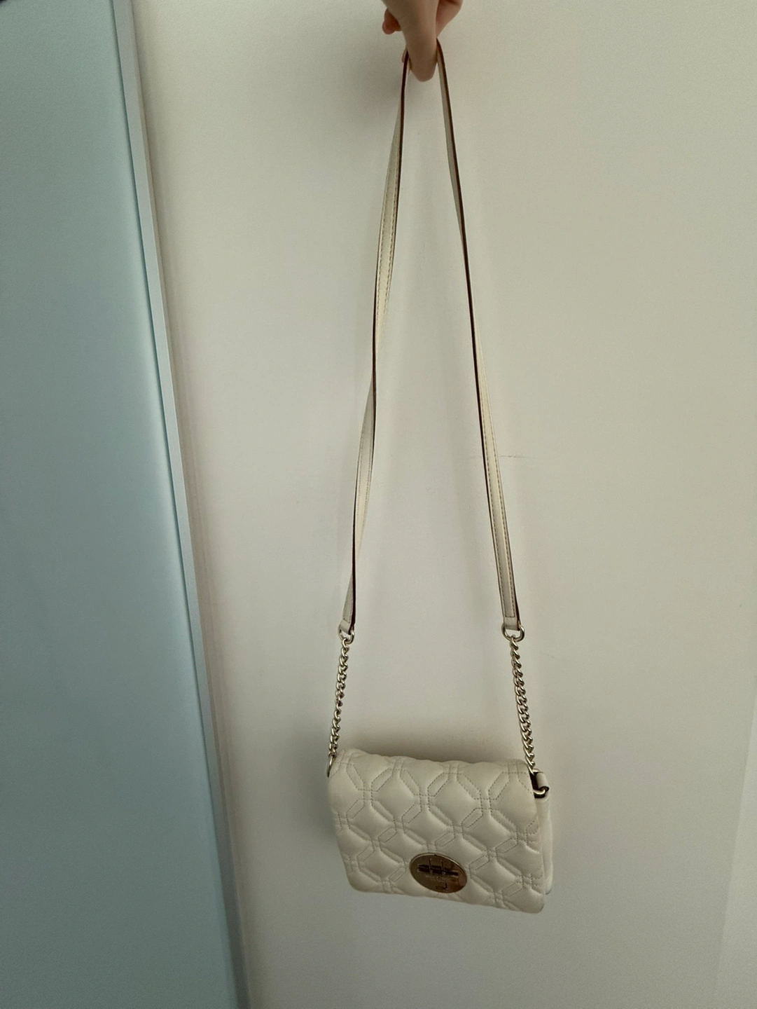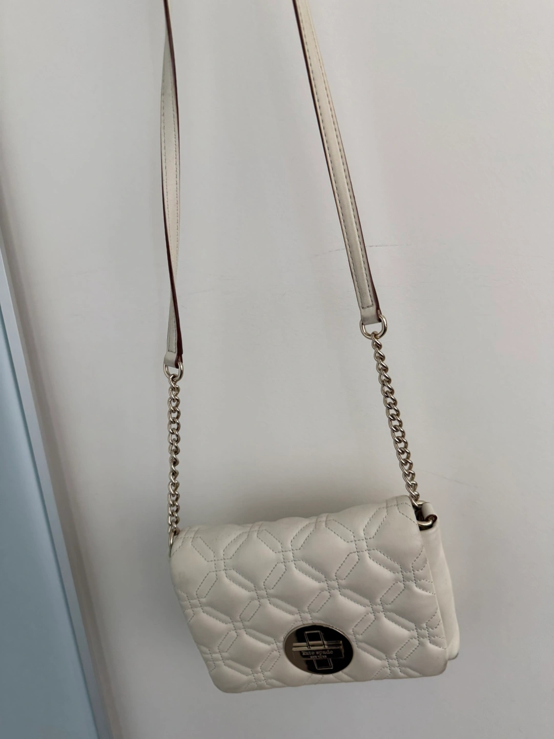 Kate Spade white crossbody bag with a quilted design. Has a gold chain strap.