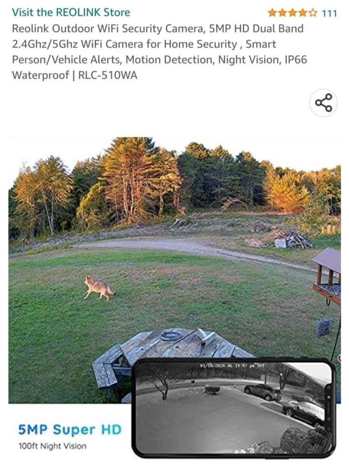 272Reolink Outdoor Wifi Security Camera, 5MP HD Dual Band 2.4Ghz/5Ghz Wifi Camera for Home Security, Smart Person/Vehicle Alerts, Motion Detection, Night Vision, IP66 Waterproof | RLC-510WA