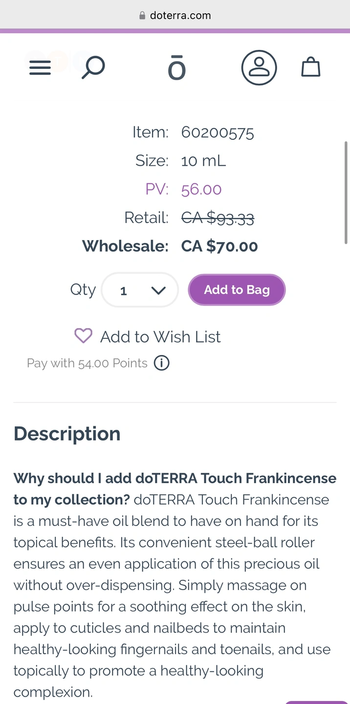 dōTERRA Frankincense Roller 10ml