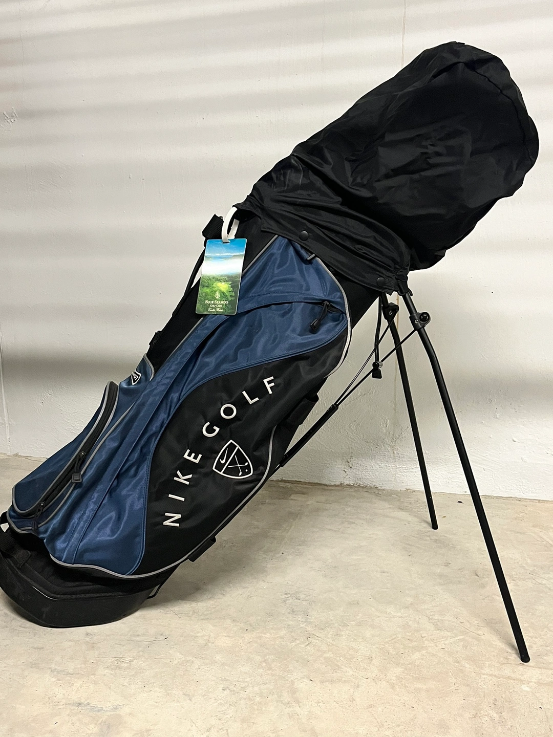 Set of golf clubs with a Nike golf bag. Includes putter, 2 set of 3 wood, 5 wood.