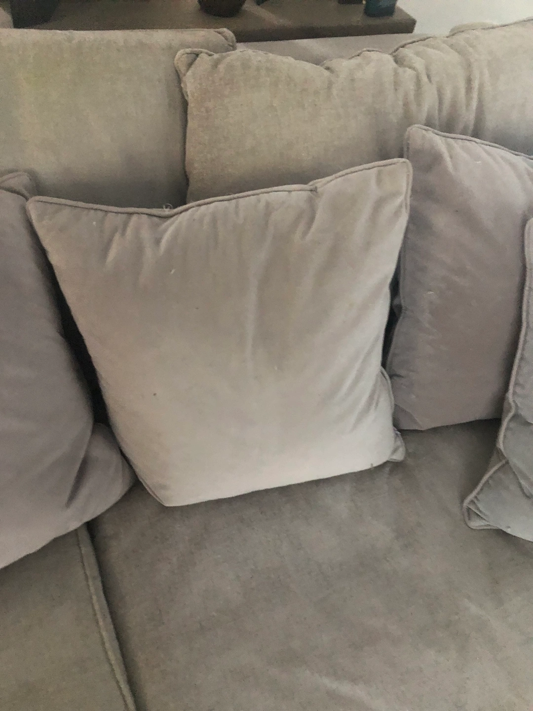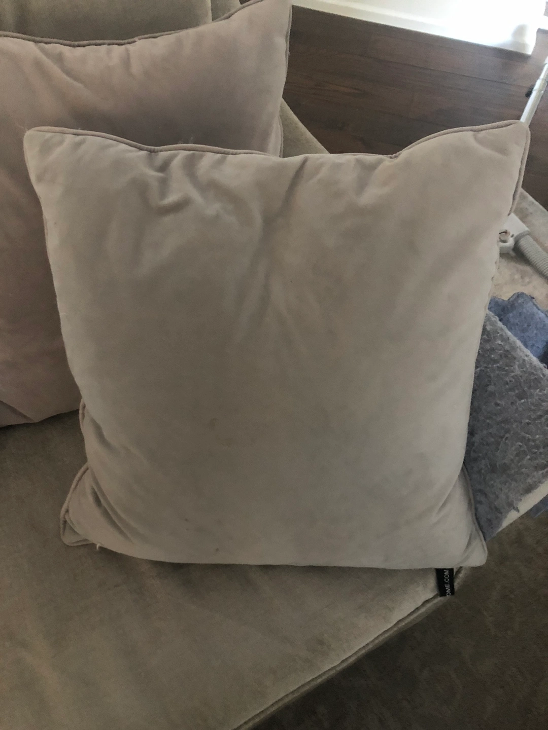 93A square decorative pillow in a light grey colour. Velvet material 6 for $60 or$15 each