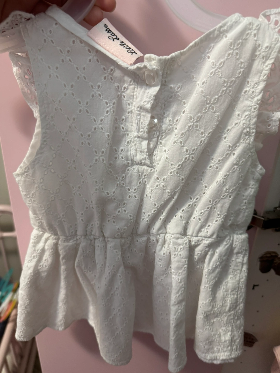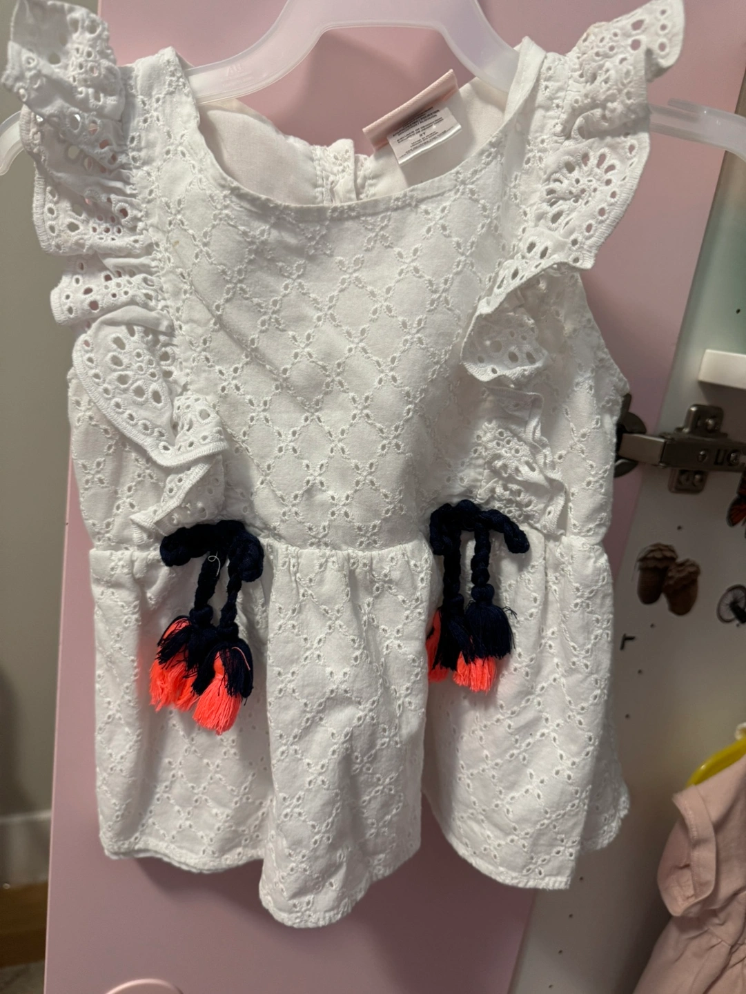 1000+Size 2T white eyelet top with blue and coral tassels. Pick up Isabella & church Cash only