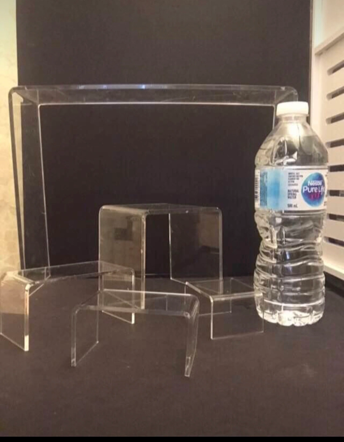 Small 500ML water bottle is placed to show actual size of the nesting tables