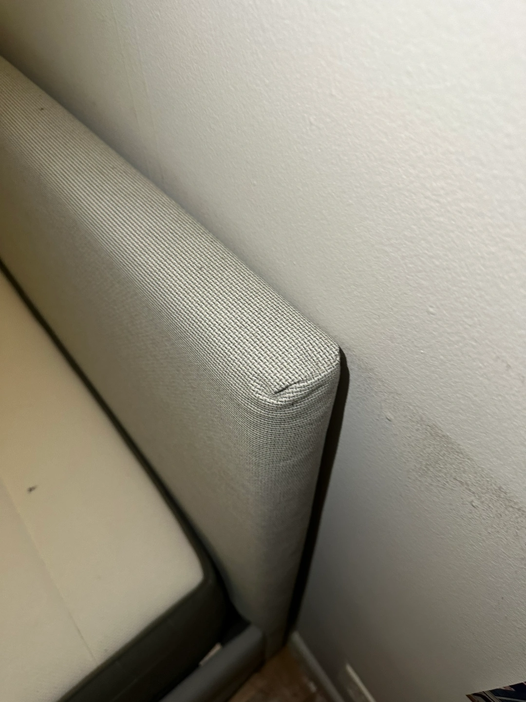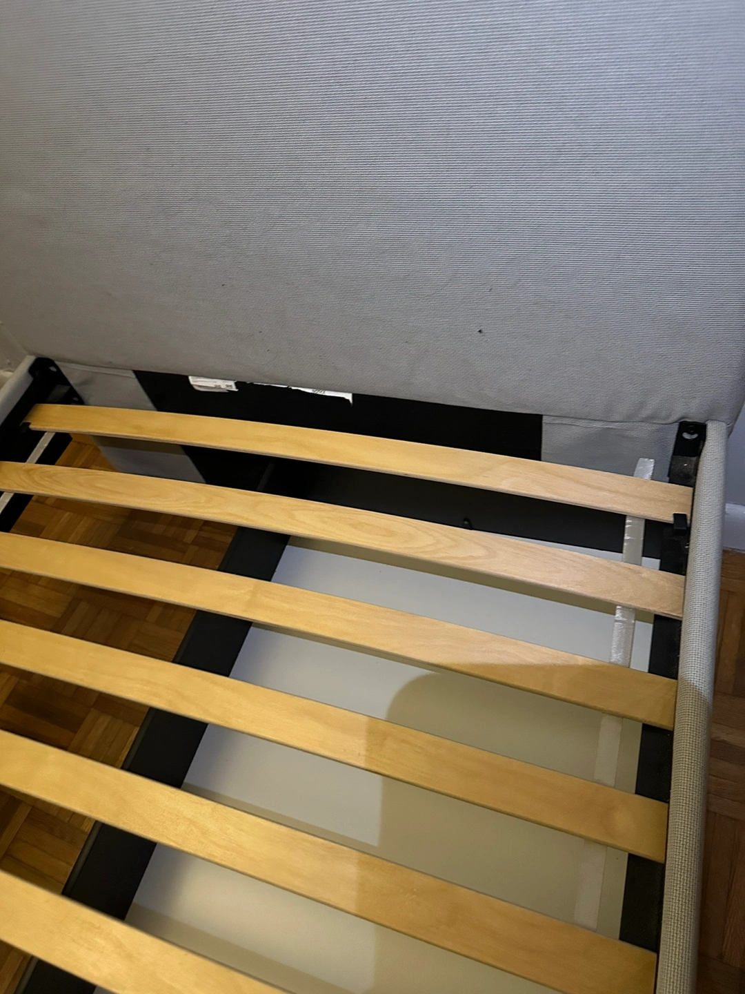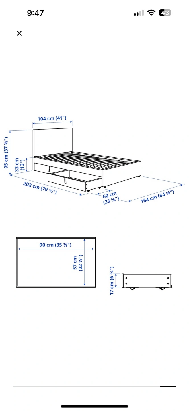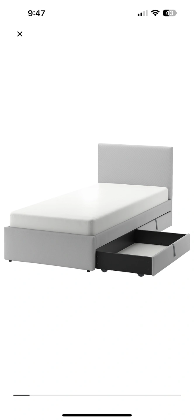 A Twin size bed frame with a headboard and storage drawers.. without mattress