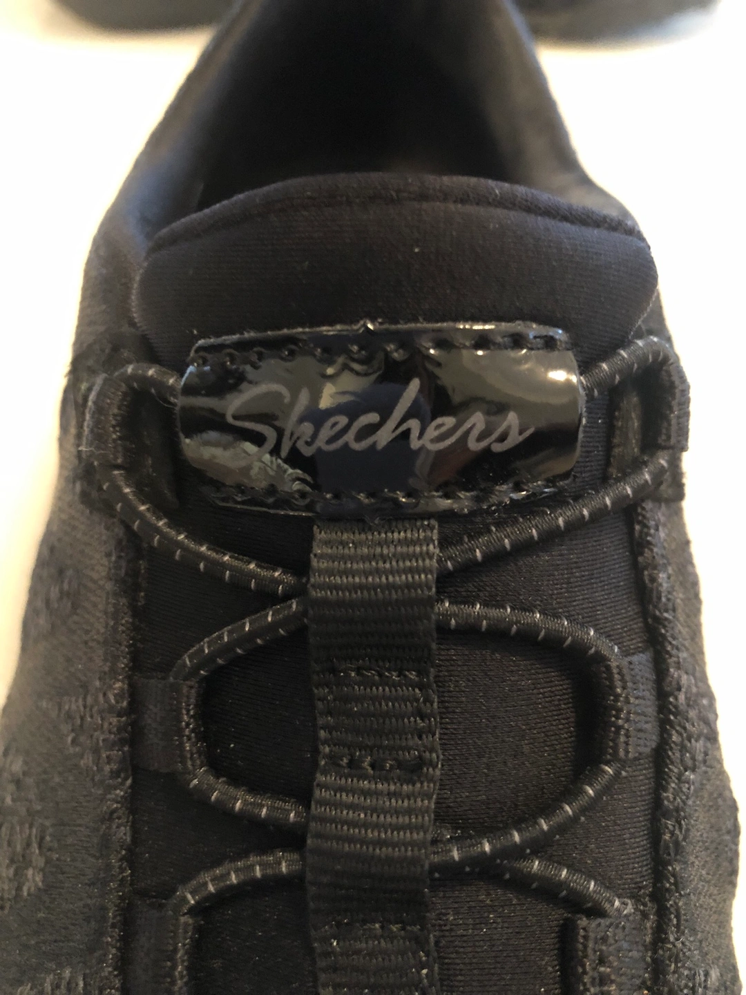 79These are women's black Skechers shoes with a relaxed fit. They have memory foam insoles and are size US 8.5.