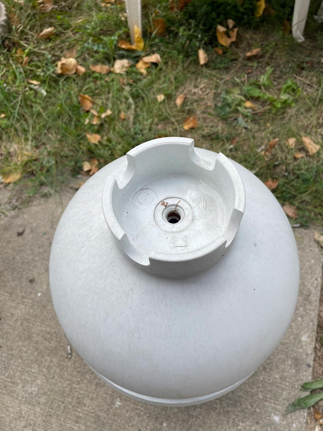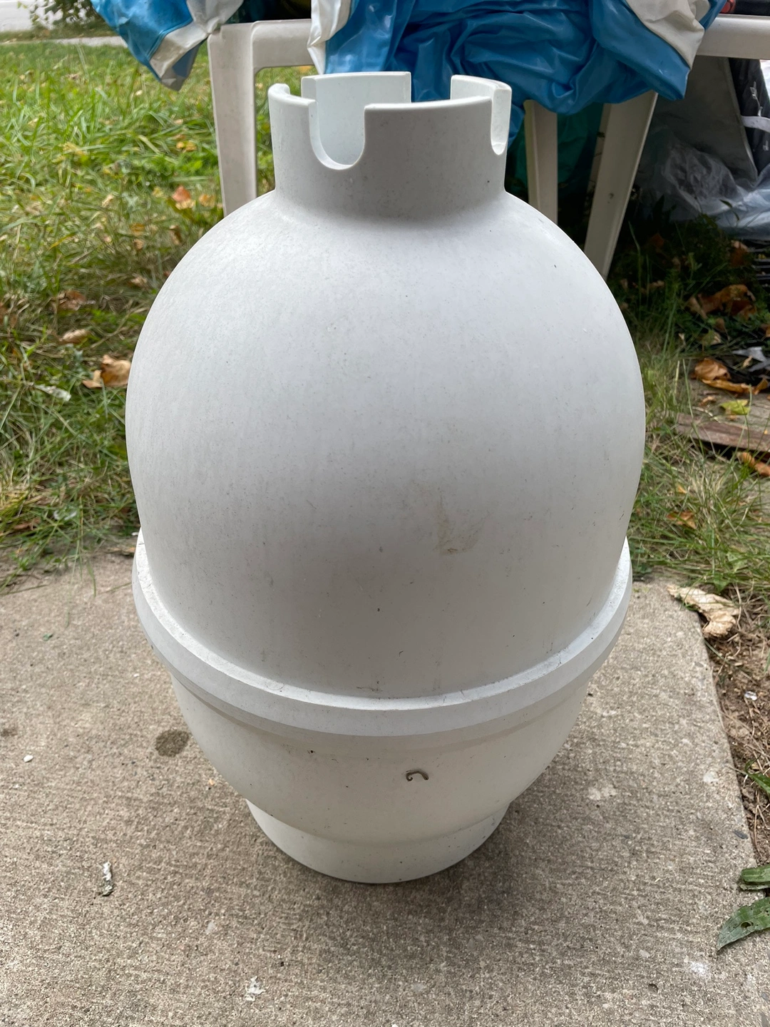 228Used pool expansion tank. No brand or size markings. About 12 inches tall. It is a standard size.