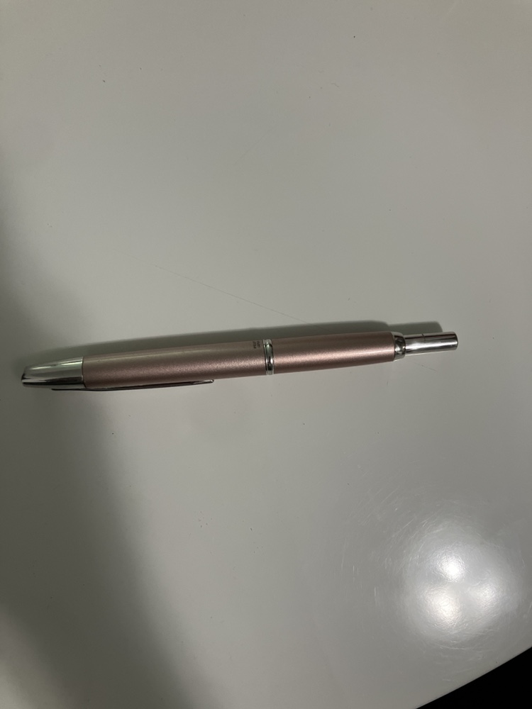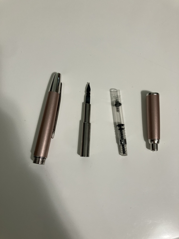 Champagne colour. Comes with all pieces seen in pictures. Nib was repaired but is a little bent. Functions perfectly, and was cleaned thoroughly for sale.