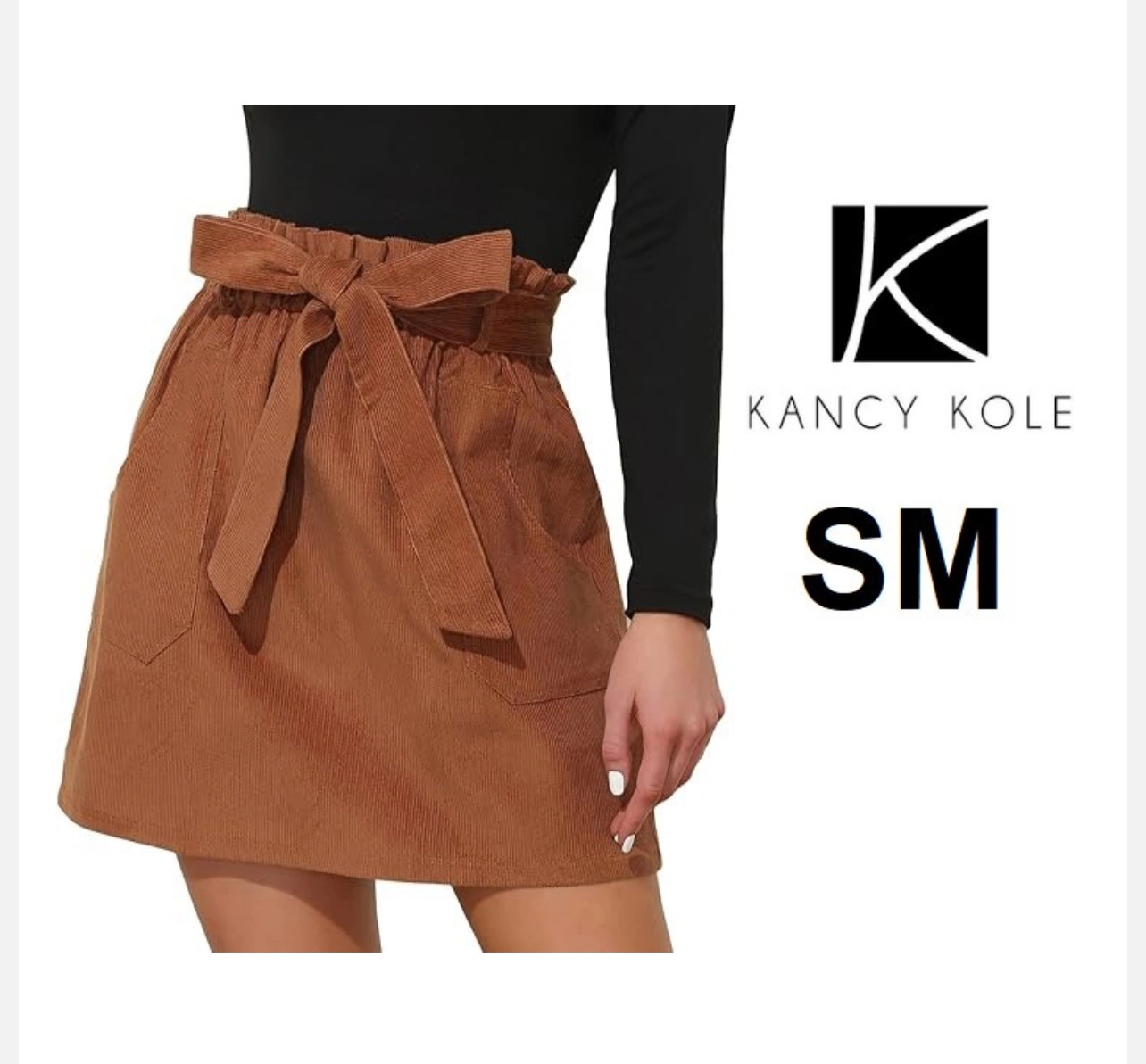 WOMEN'S KANCY KOLE CORDUROY HIGH WAIST A LINE ELASTIC WAIST SKIRT WITH POCKETS - SMALL - RUST BROWN