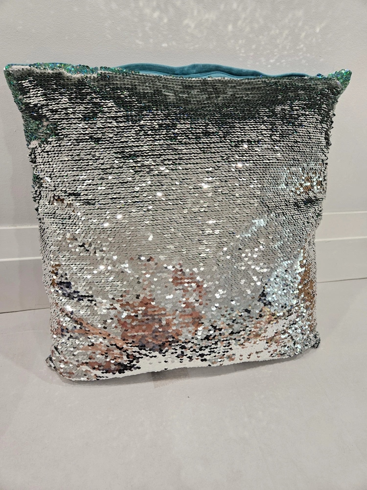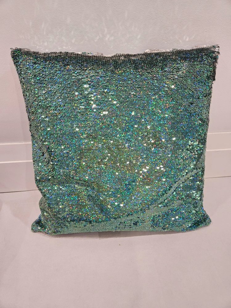 97Green and silver sequin pillow with a solid teal back. The pillow cover is removable. The pillow insert is included. Pillow cover is reversible, sequins flip back and forth. Brand new decor pillow cover Cover only ! 16 x16 inch 10$ each I have four