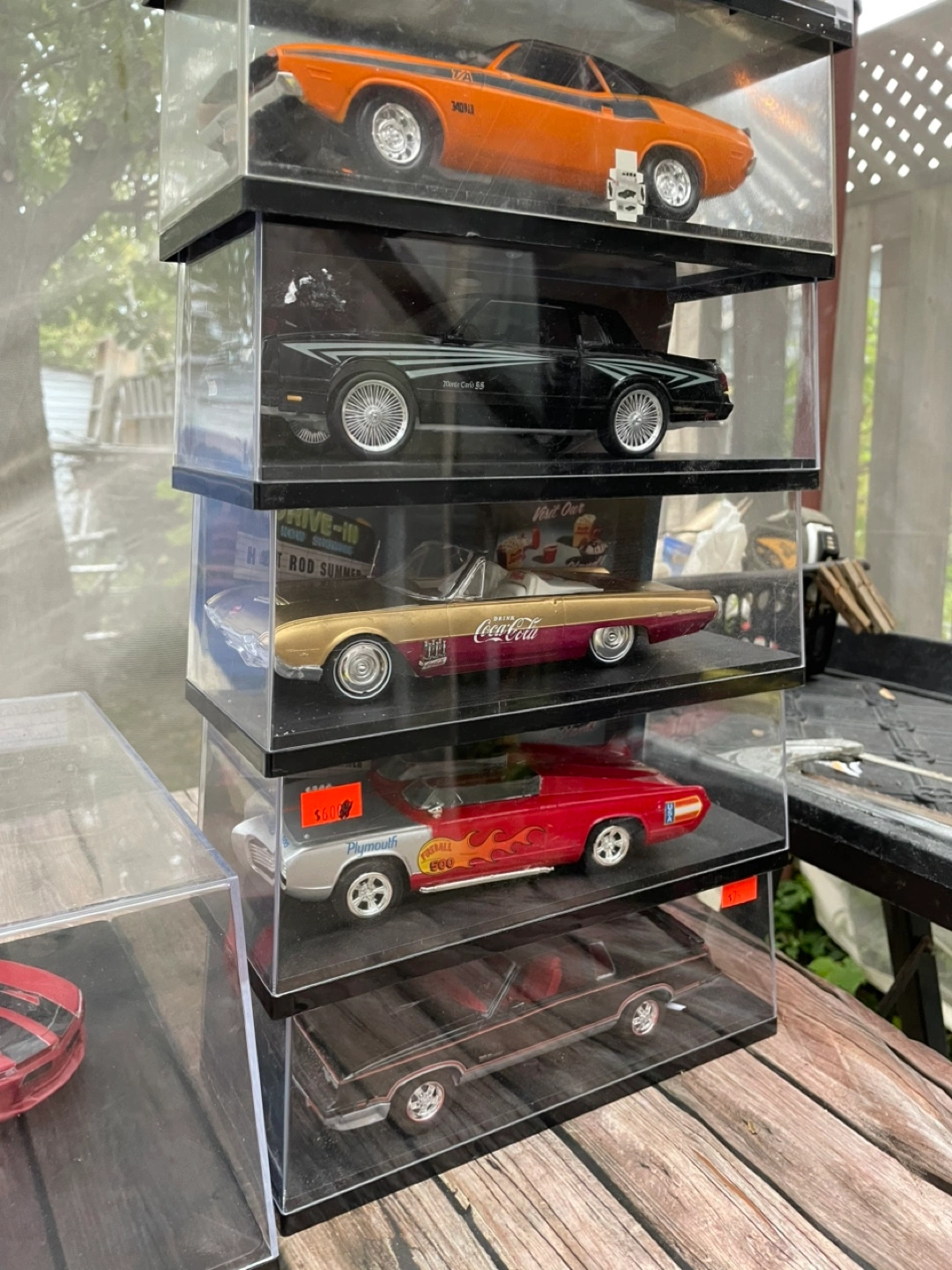 Each car has its own unique style. Every item is carefully placed in an acrylic display case.