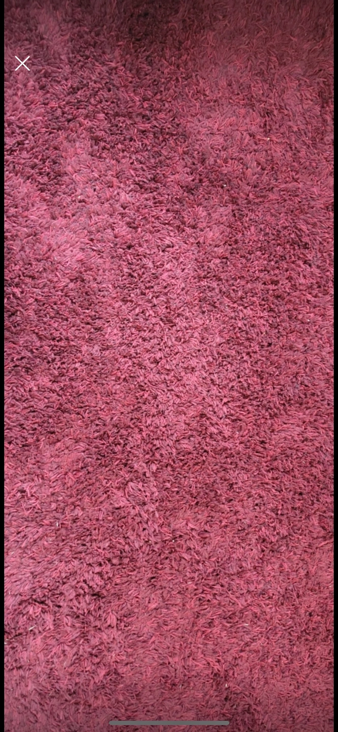 A deep burgundy shag carpet, perfect for adding a touch of colour to any room.