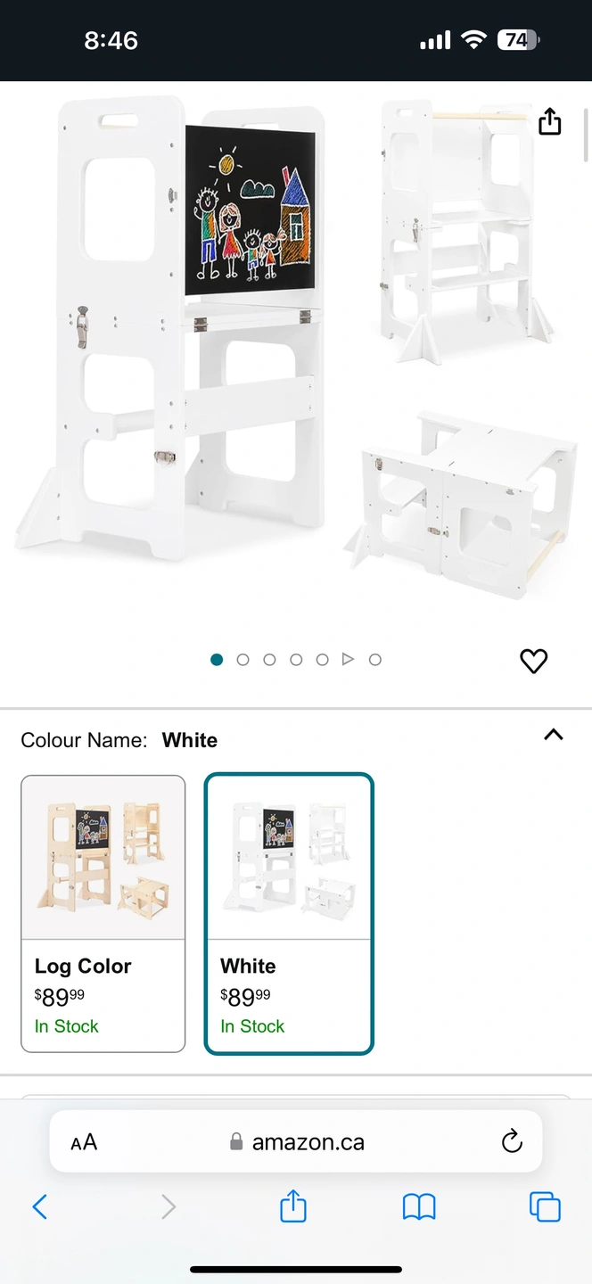 2-in-1 Learning Tower with a chalkboard and a step stool. New and just assembled.