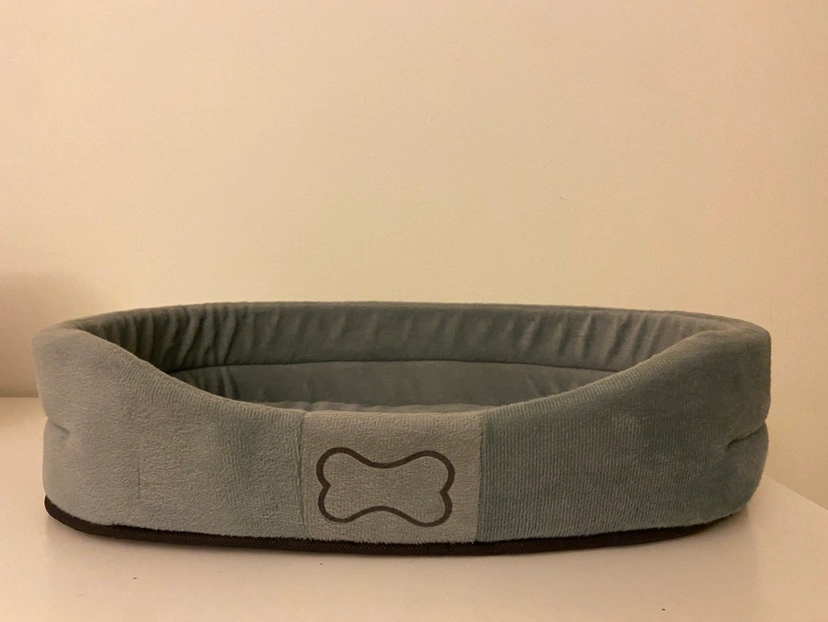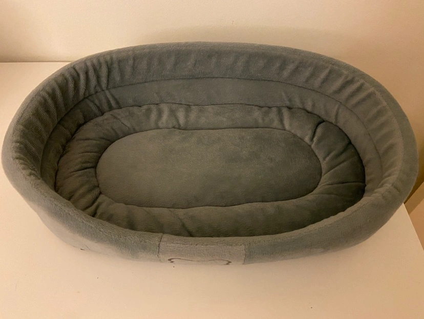 Grey plush pet bed, suitable for a cat or small dog.