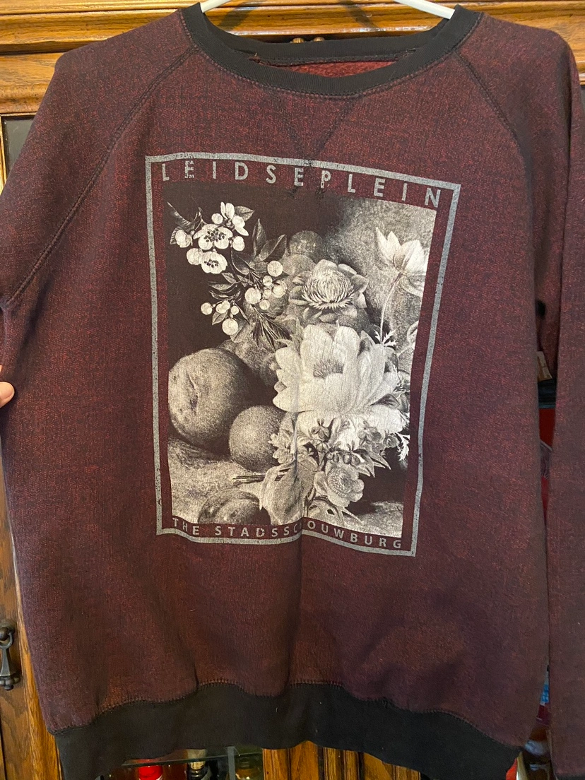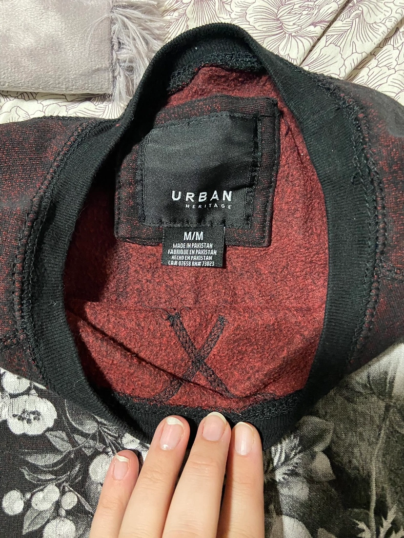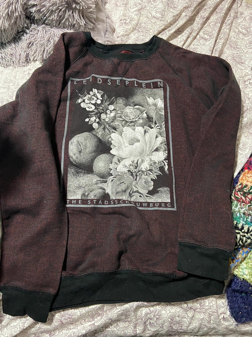size medium red and black sweatshirt with a floral design on the front.