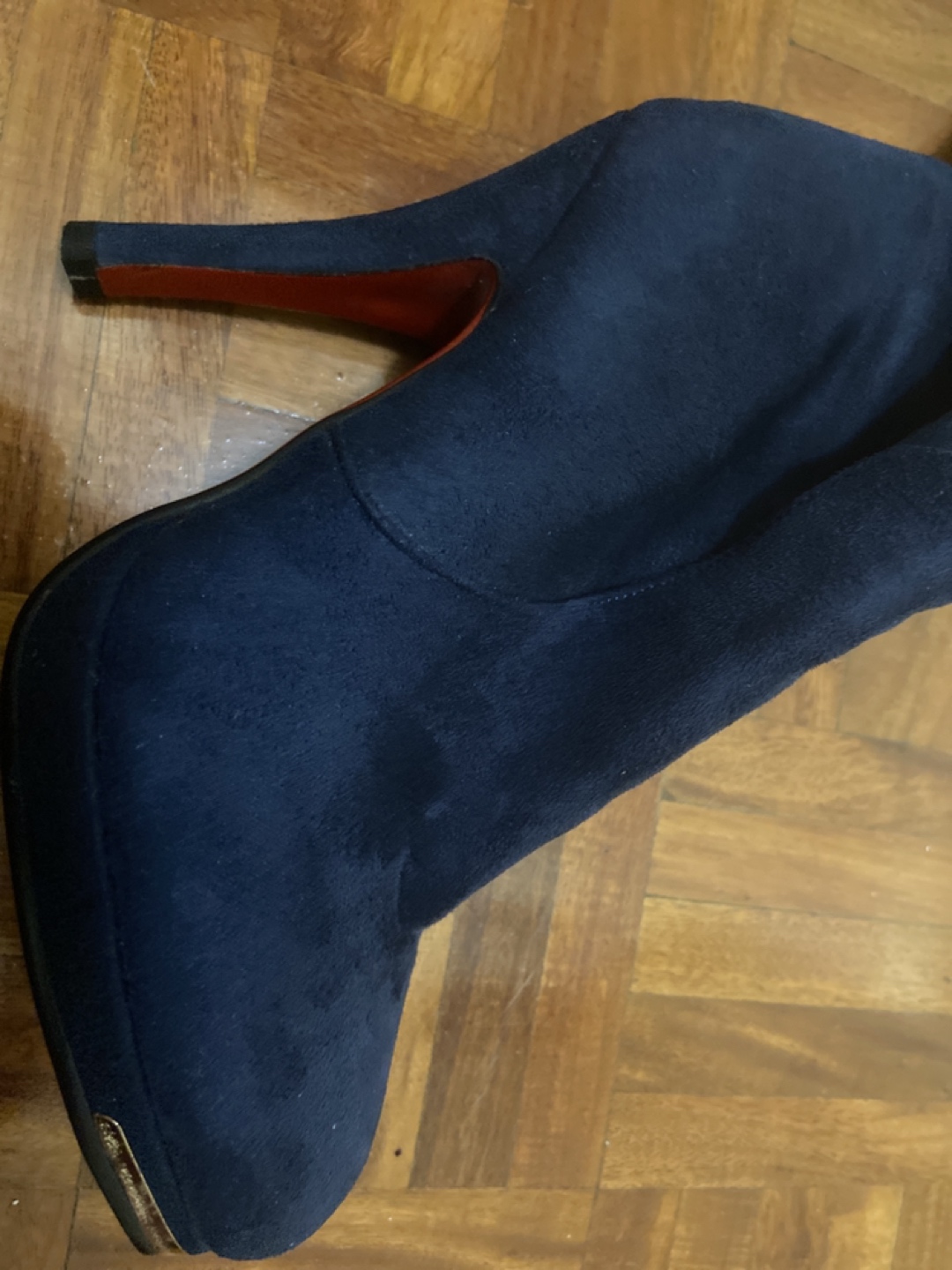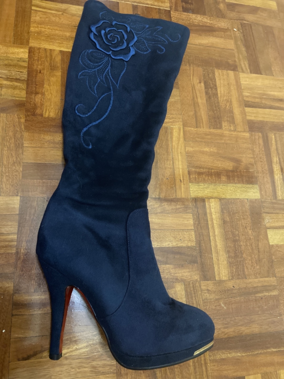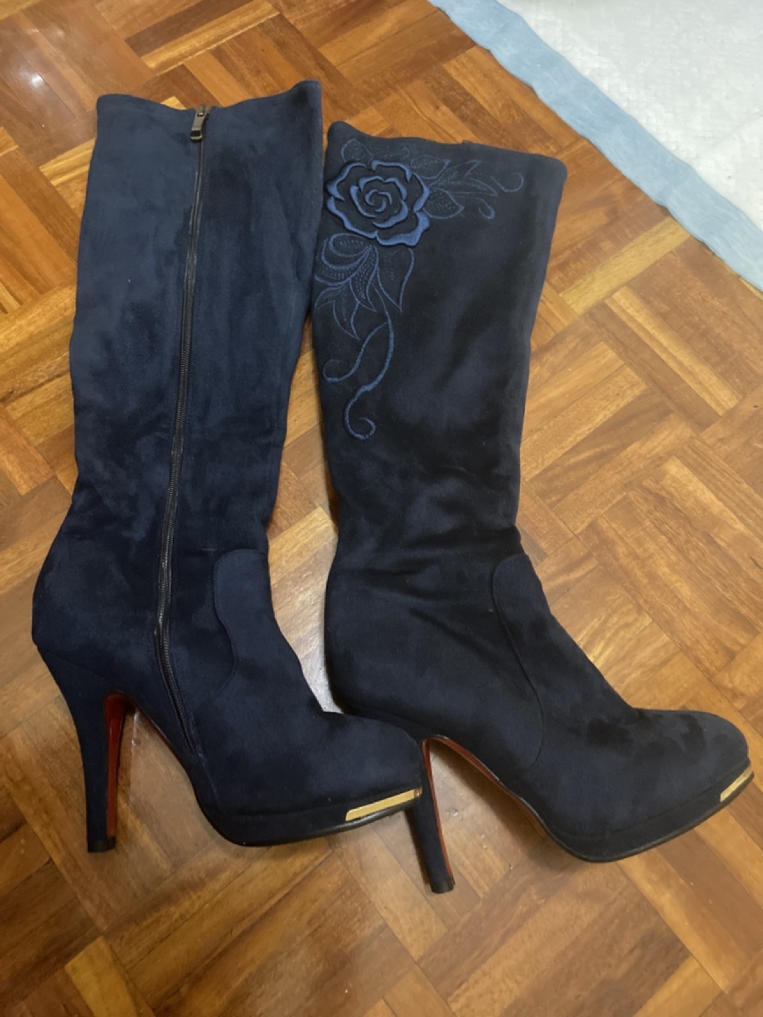 Blue half knee boots high heels