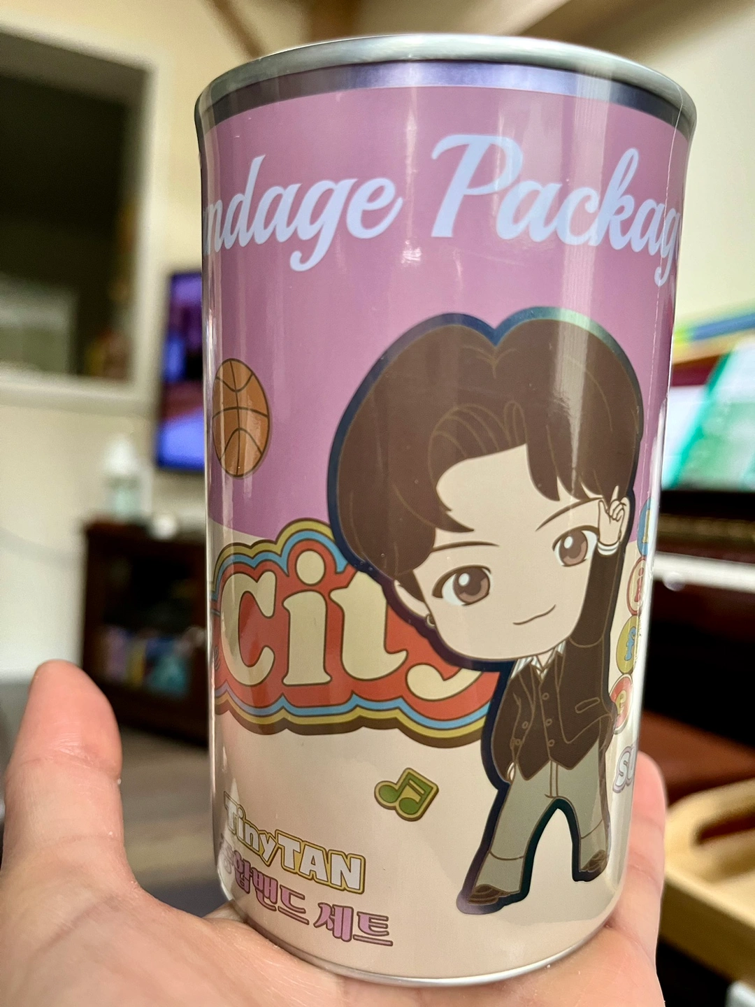 -brand new and sealed bts suga bandaids in a novelty can decor